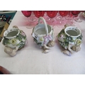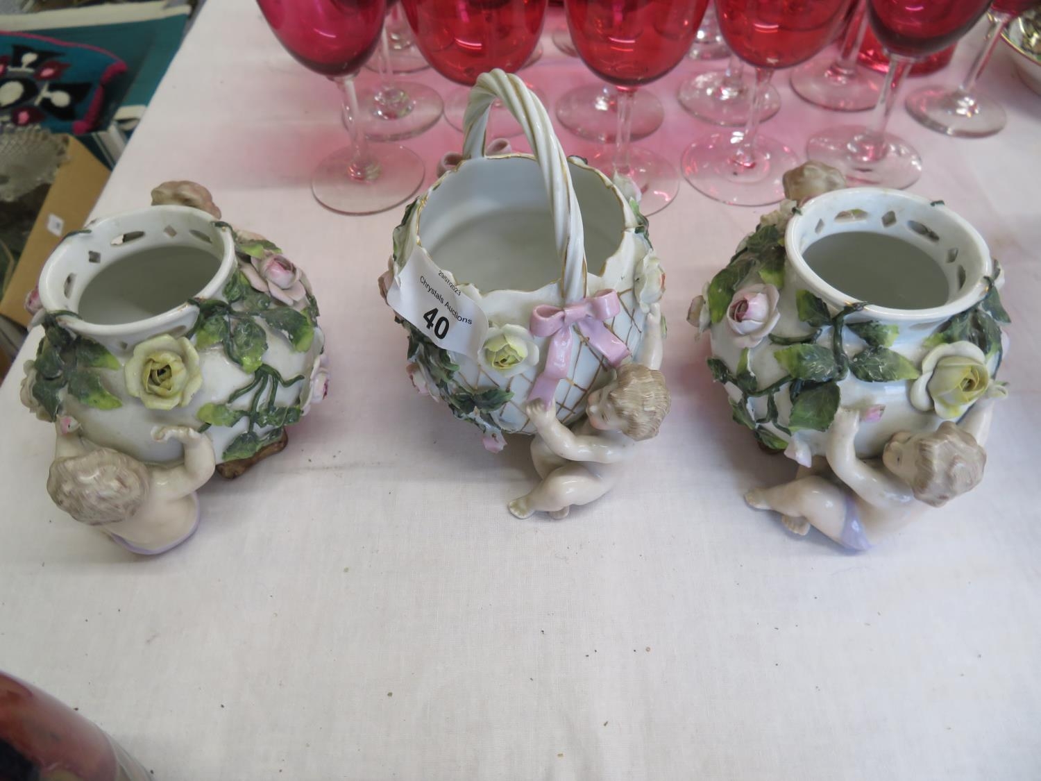Set of three Meissen style porcelain urns with Putti and Floral decoration (damage)