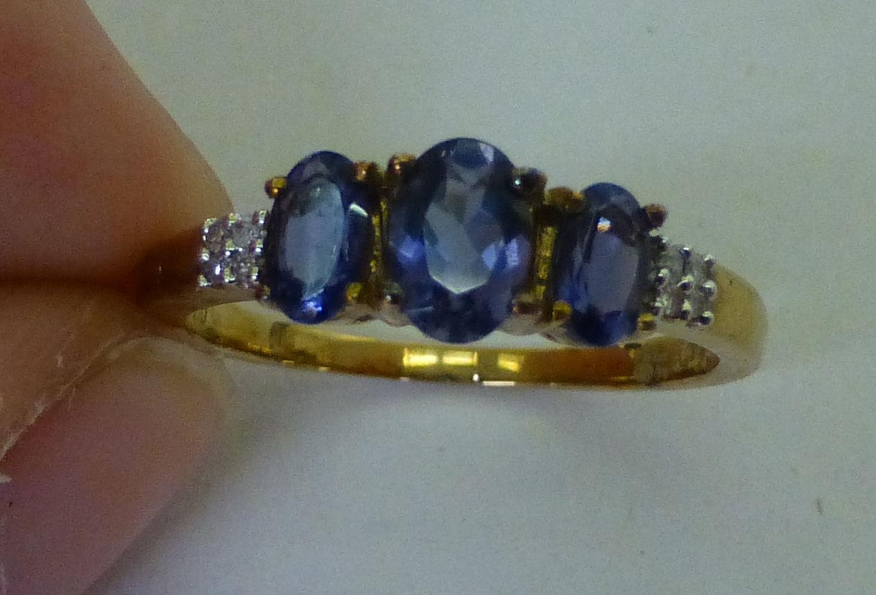 A 9ct gold tanzanite and diamond ring