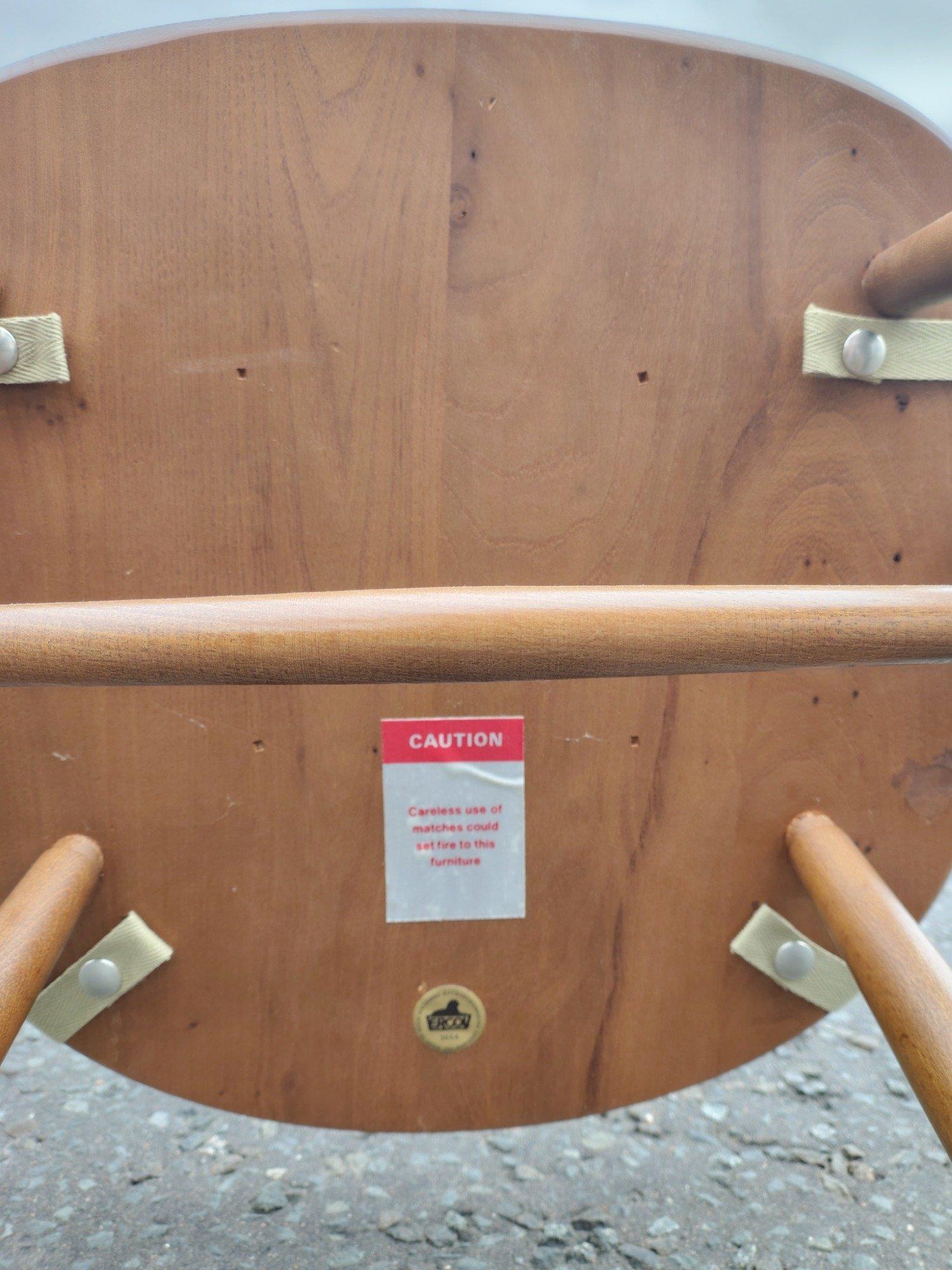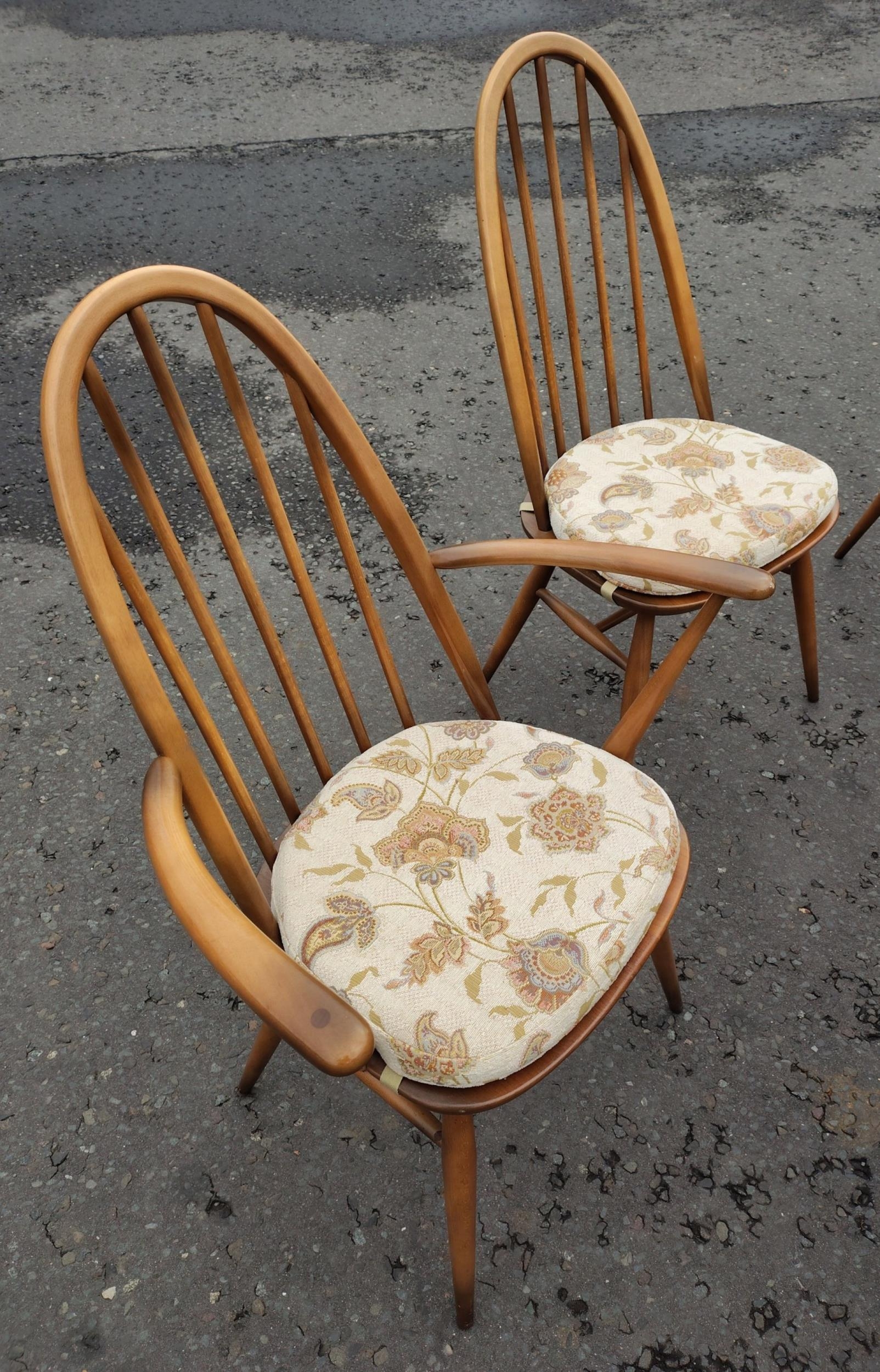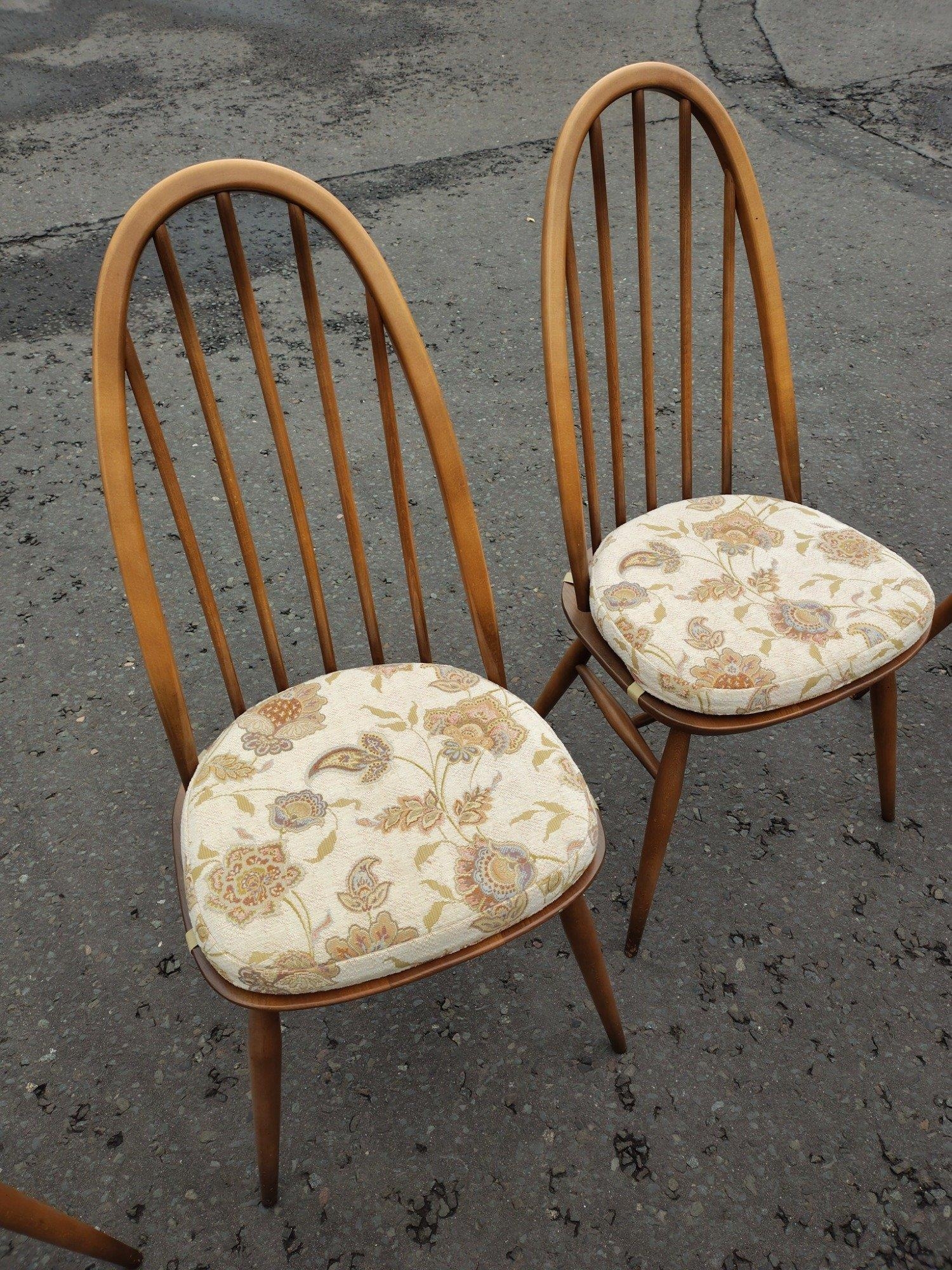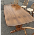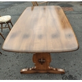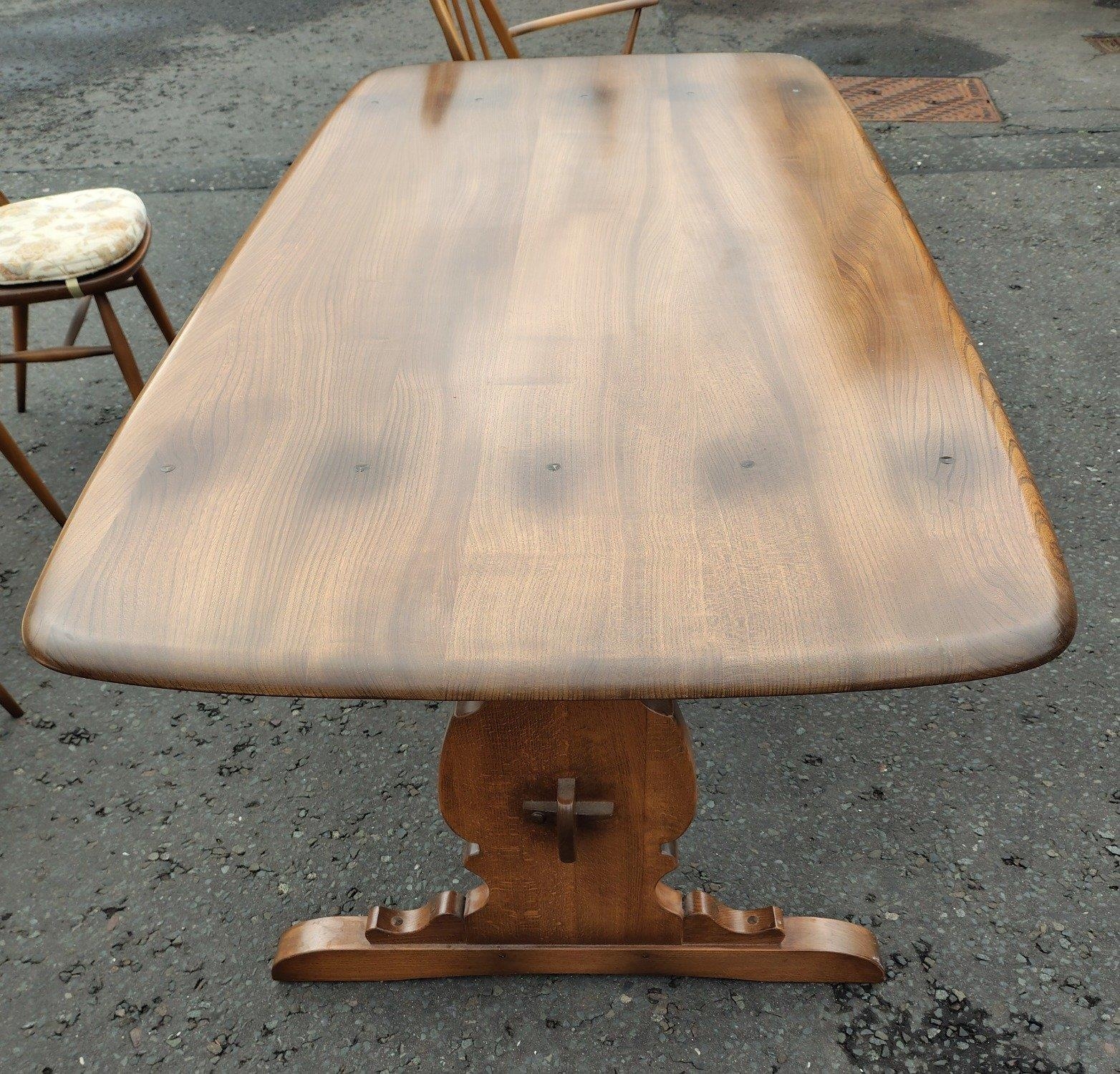 ERCOL six place dining table with chairs. All in good condition. Chairs with detachable light cream seat pads. Table is 178cm wide approx.