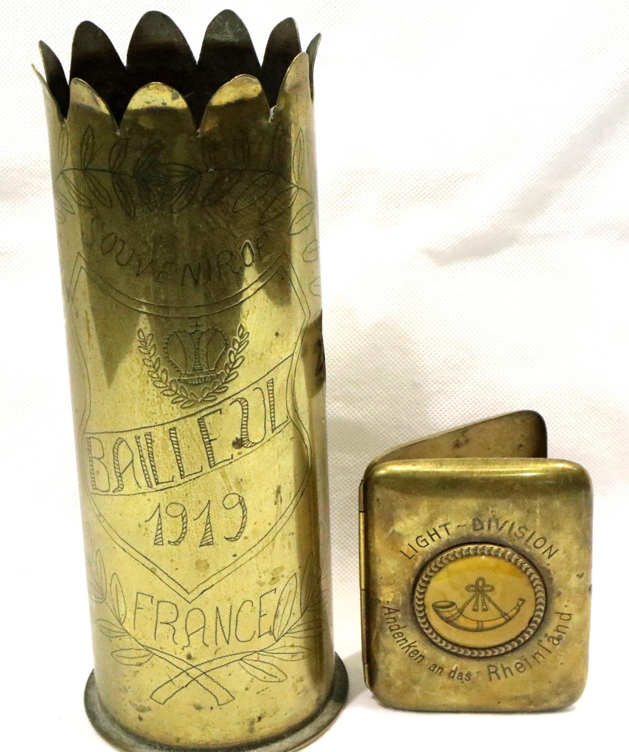 Light division trench art cigarette case with an engraved 1917 shell casing. P&P Group 1 (£14+VAT for the first lot and £1+VAT for subsequent lots)