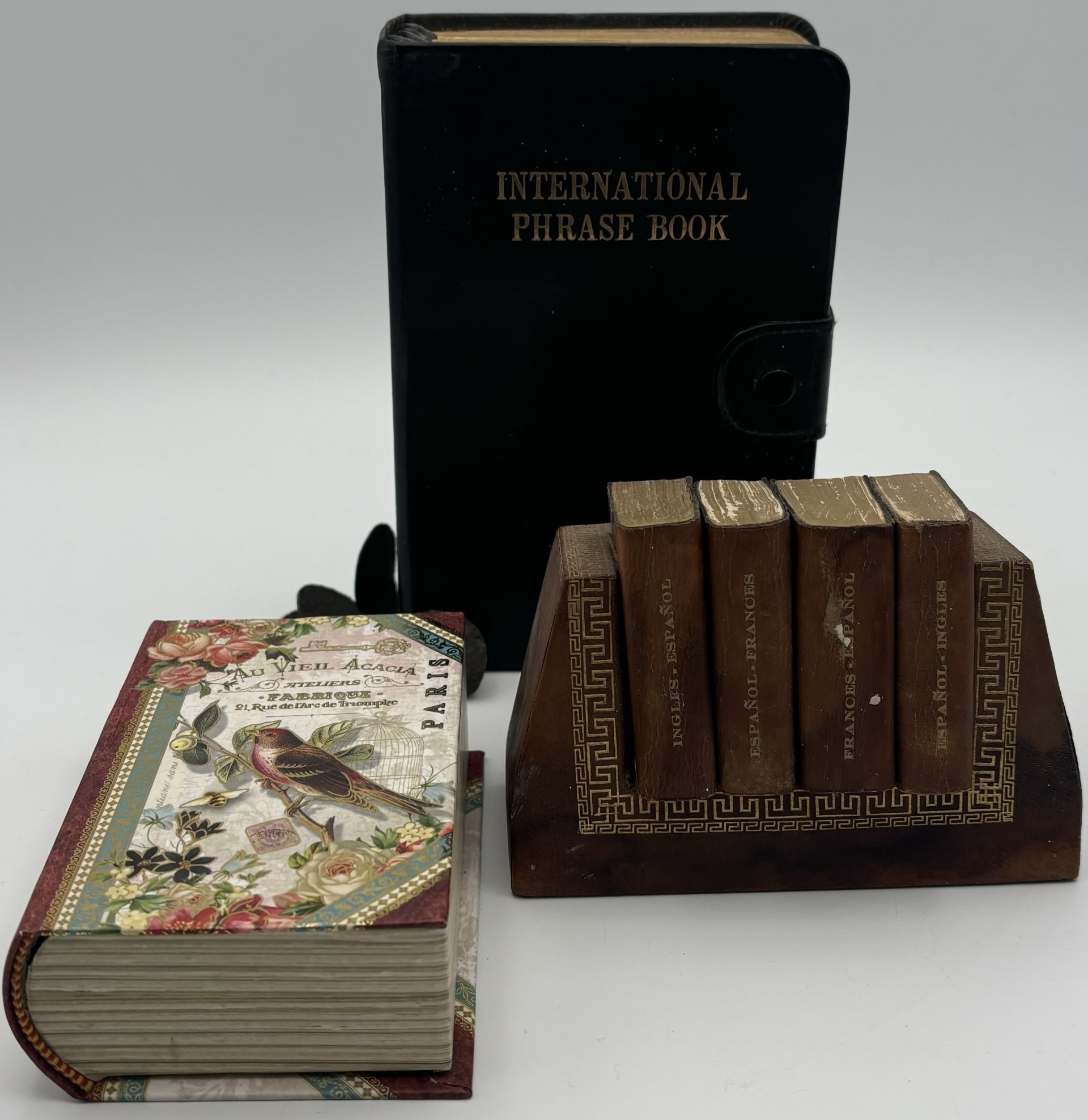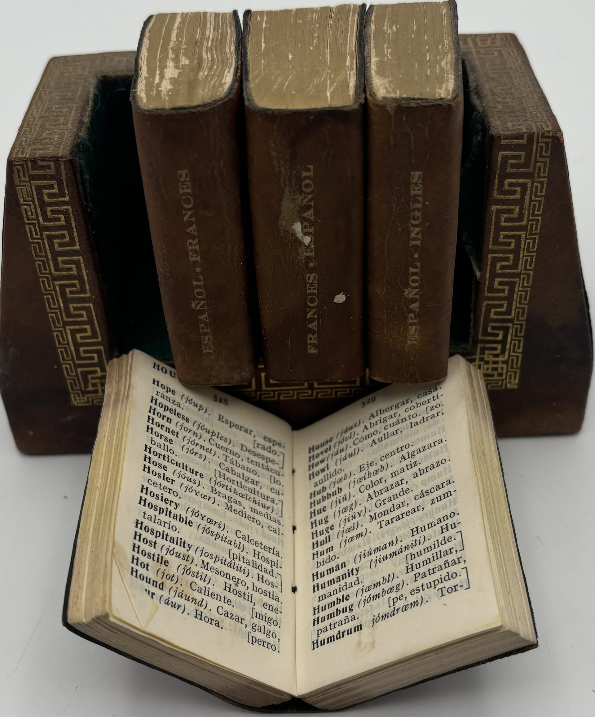 Collection of vintage books. To include a bi-lingual set of dictionaries, international phrase book & friendship book.