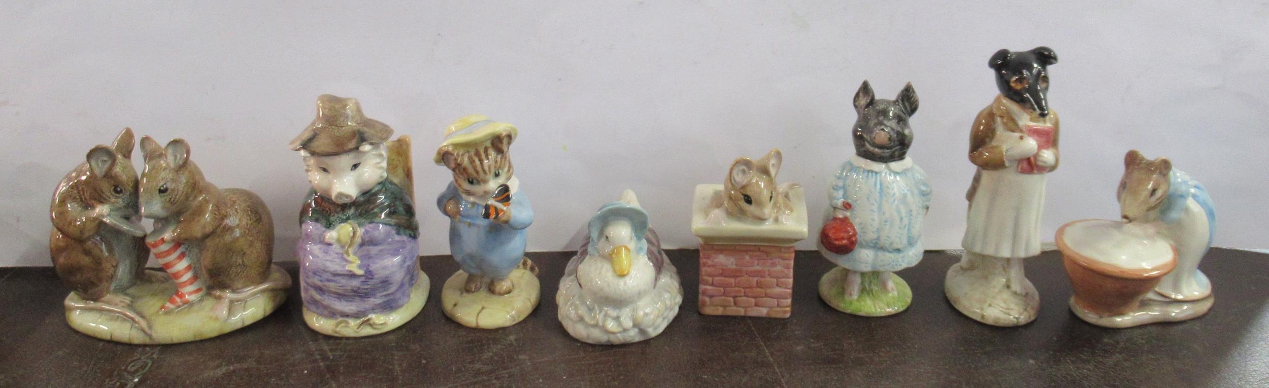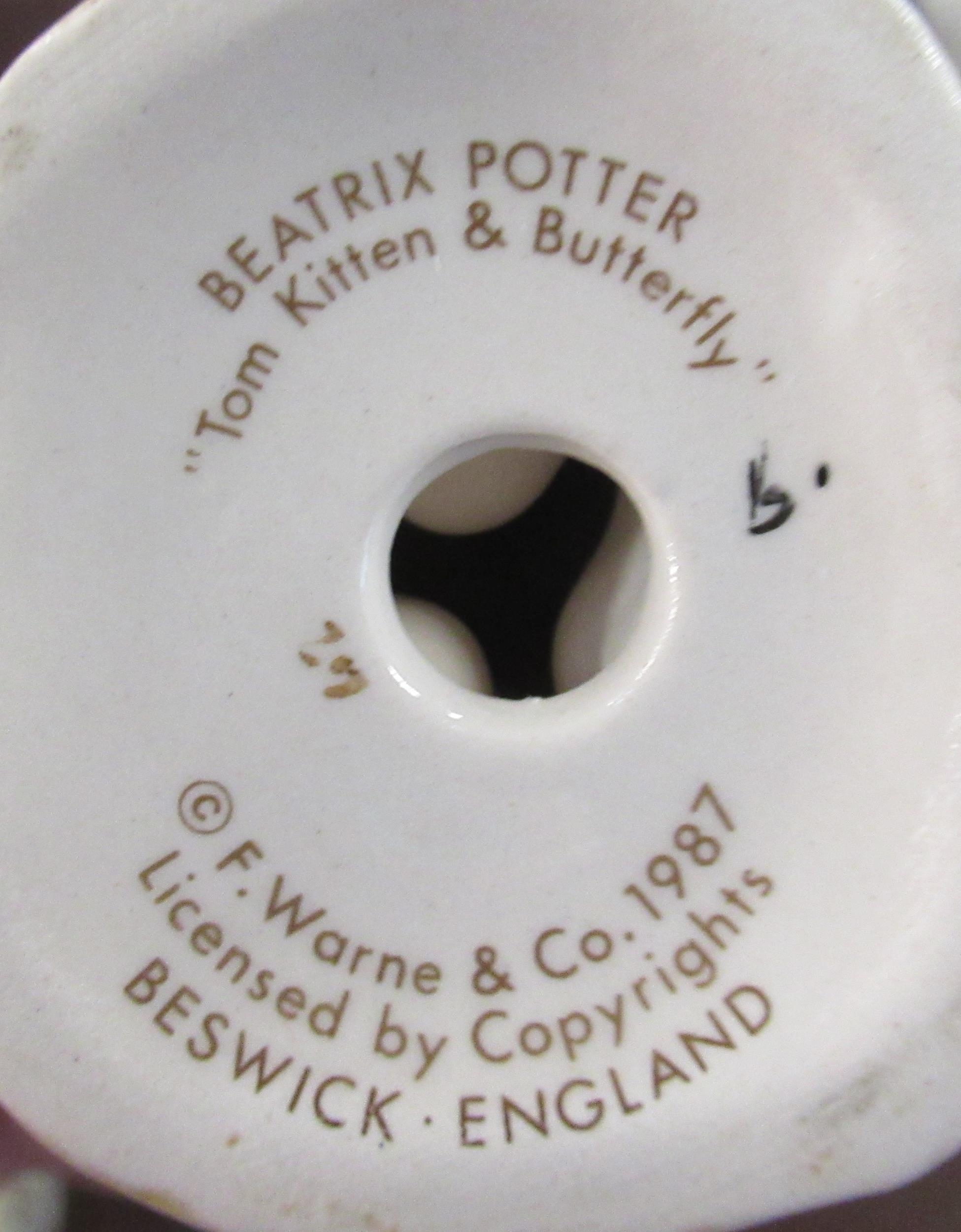 8 Beswick Beatrix Potter figures, together with 2 Royal Albert figures to include Tom Kitten and butterfly, Pickles Pig Wig and Tom Thumb etc