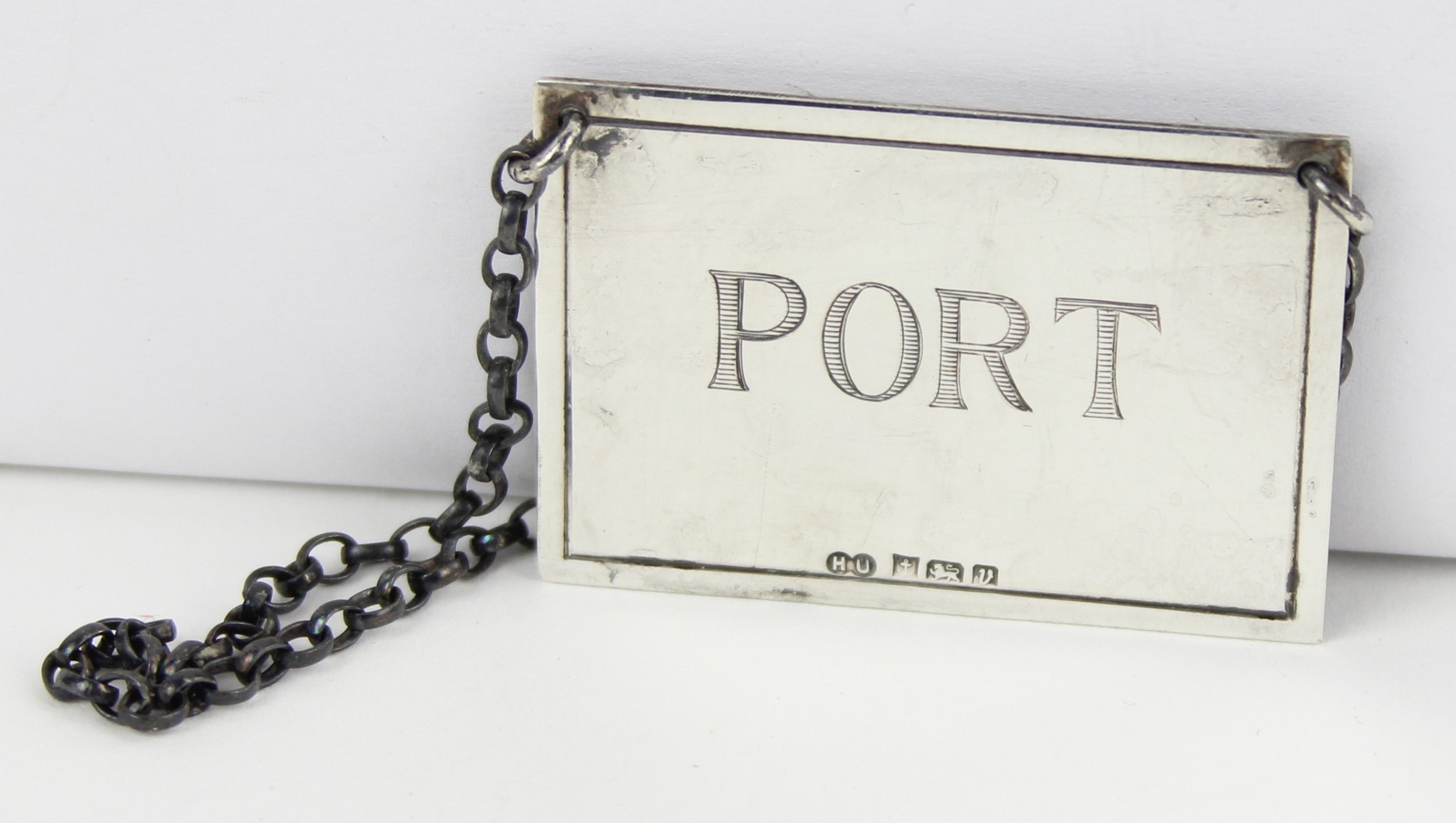 A silver Port decanter label, Birmingham 1995 by Hampton Utilities, 20.79g, 50mm wide