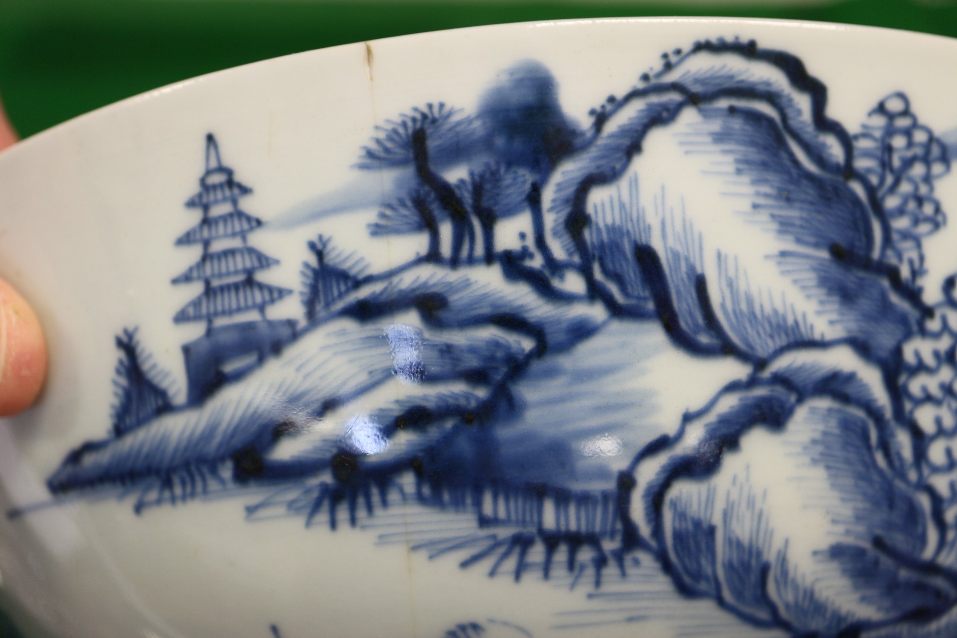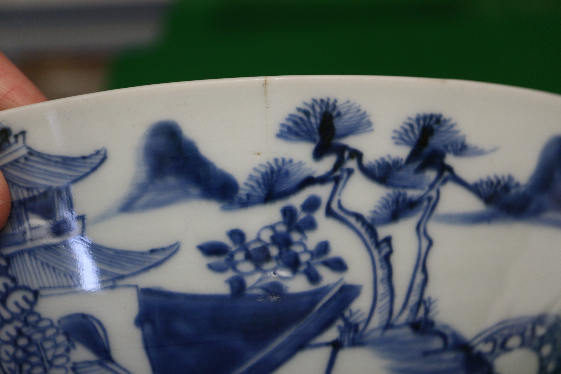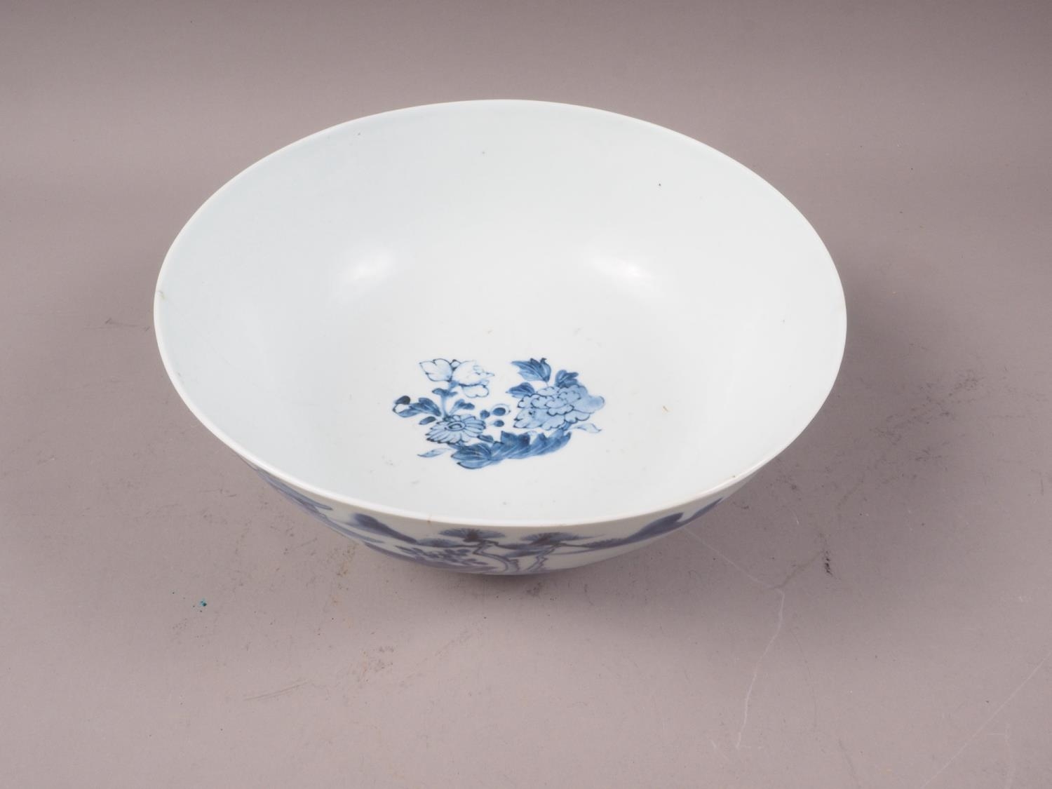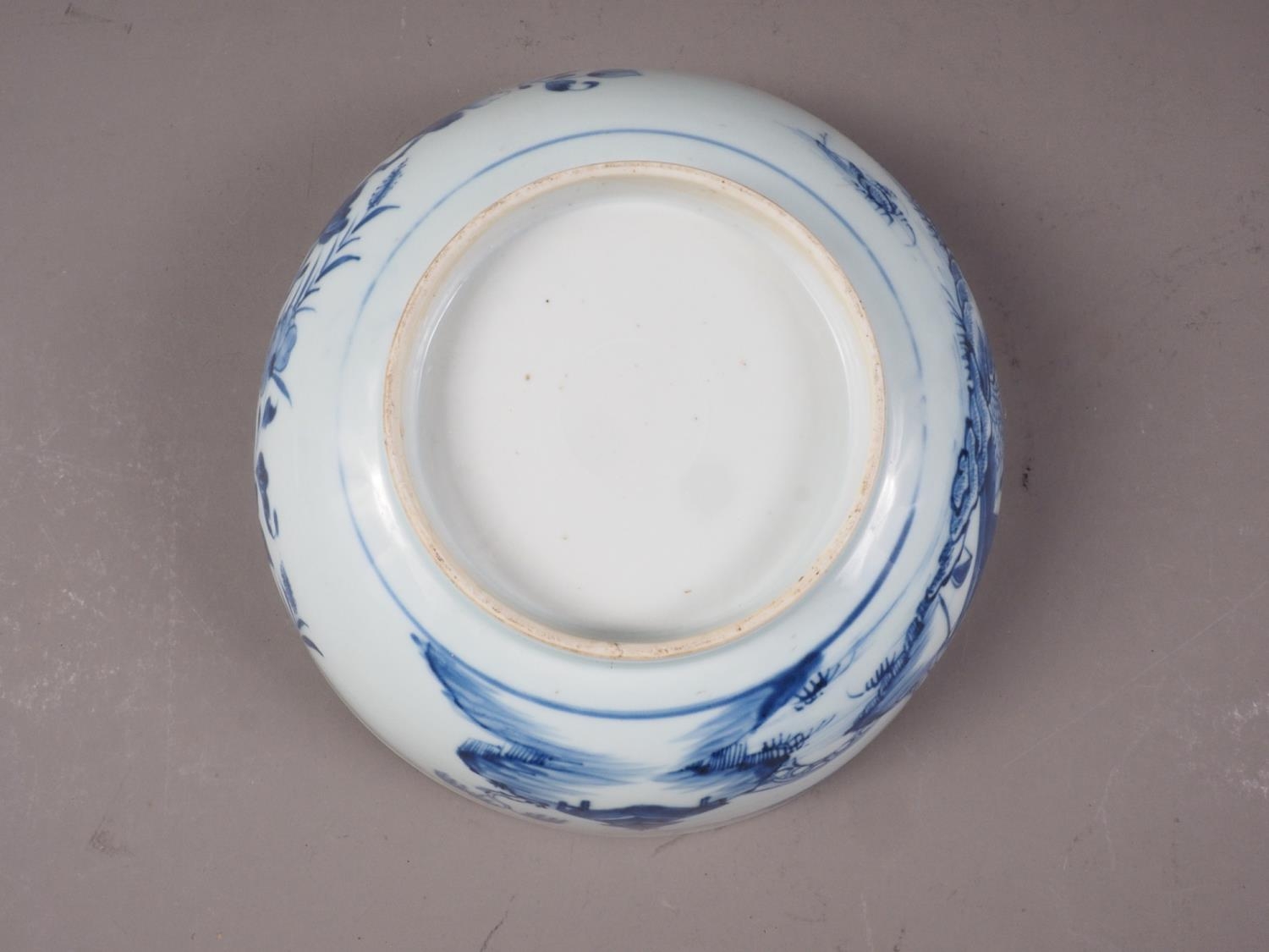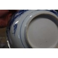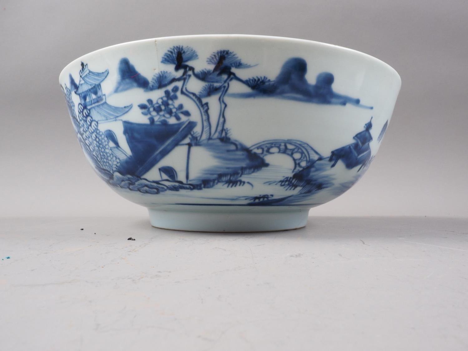 A 19th century Chinese porcelain bowl, decorated buildings, 9 1/4" dia (cracks)