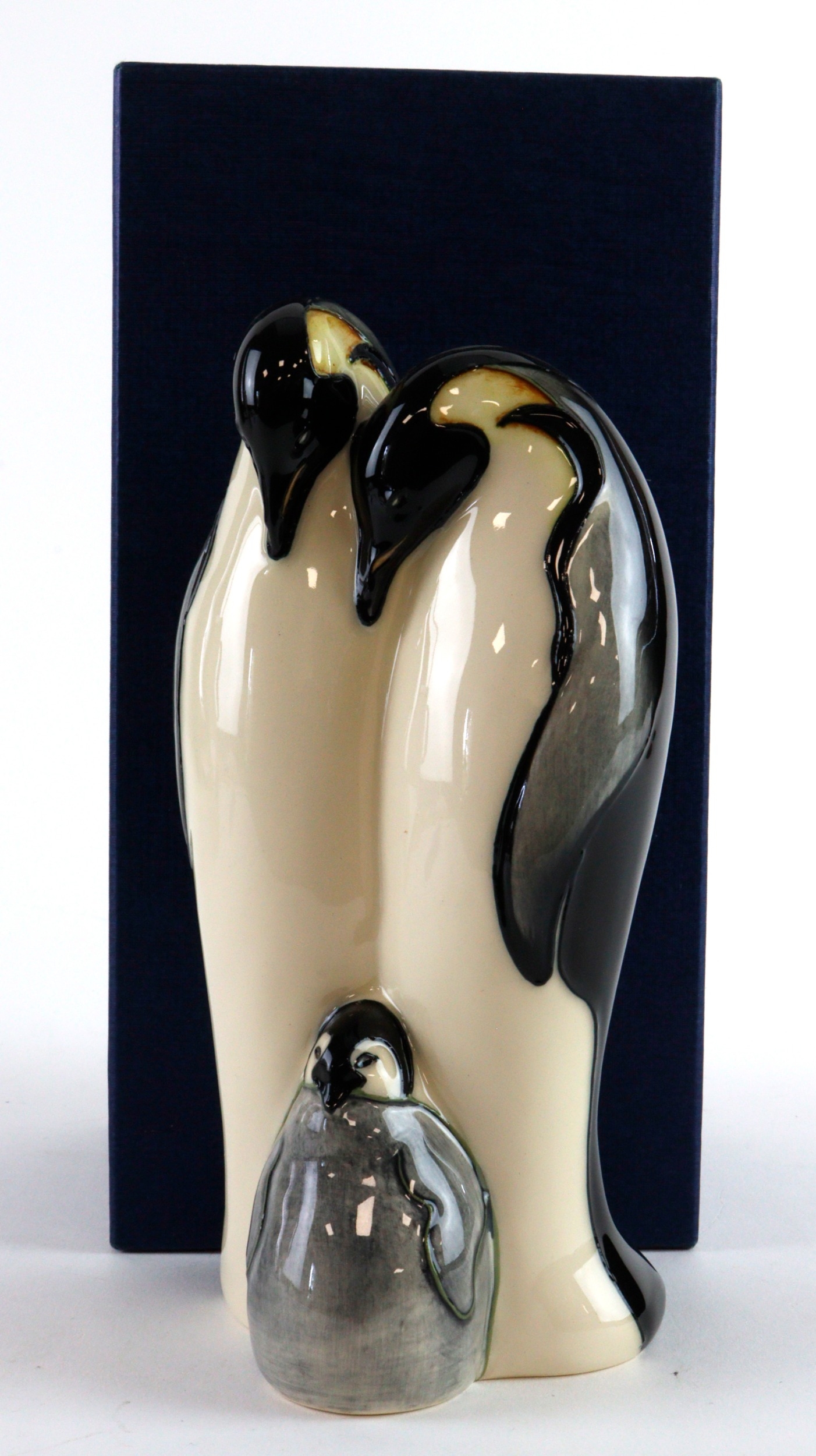 Moorcroft Emperor Penguin Family figure, dated 2009, makers marks to base, height 17cm approx., contained in a Moorcroft box