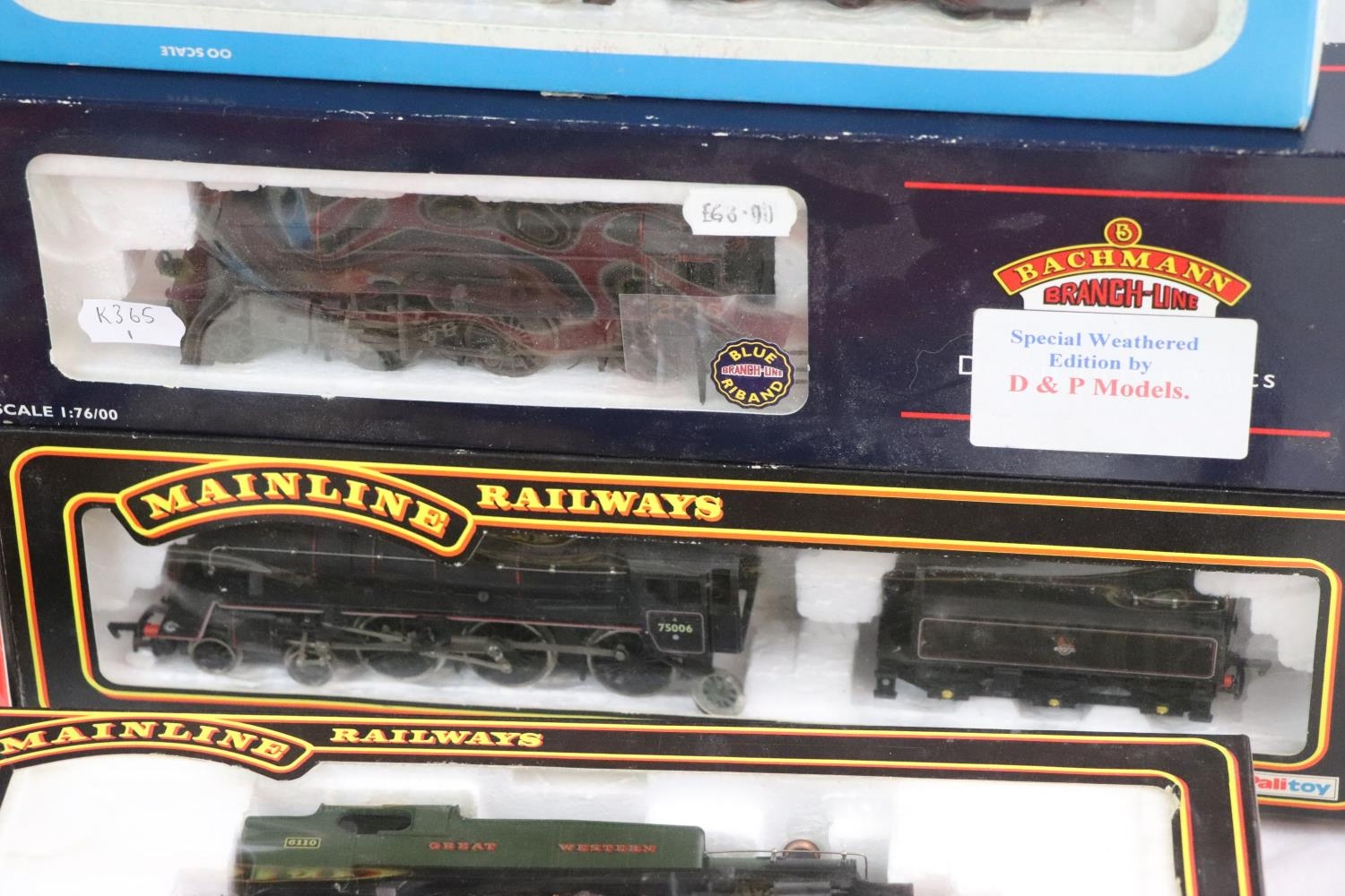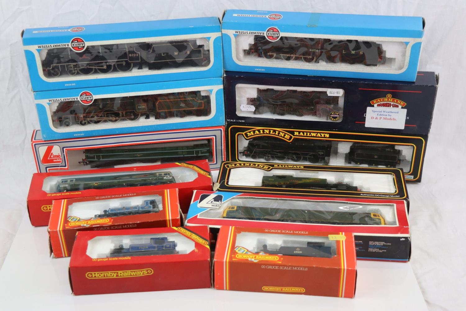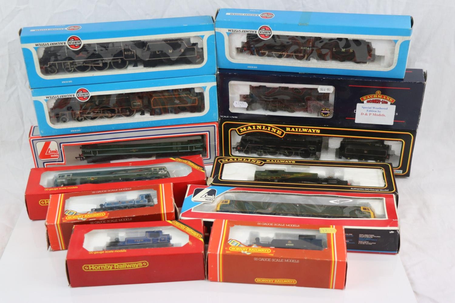 12 Boxed OO gauge locomotives, a few with replacement boxes, include boxed Bachmann 32178 Crab 2715 LMS Lined Black special weathered edition by D & P Models