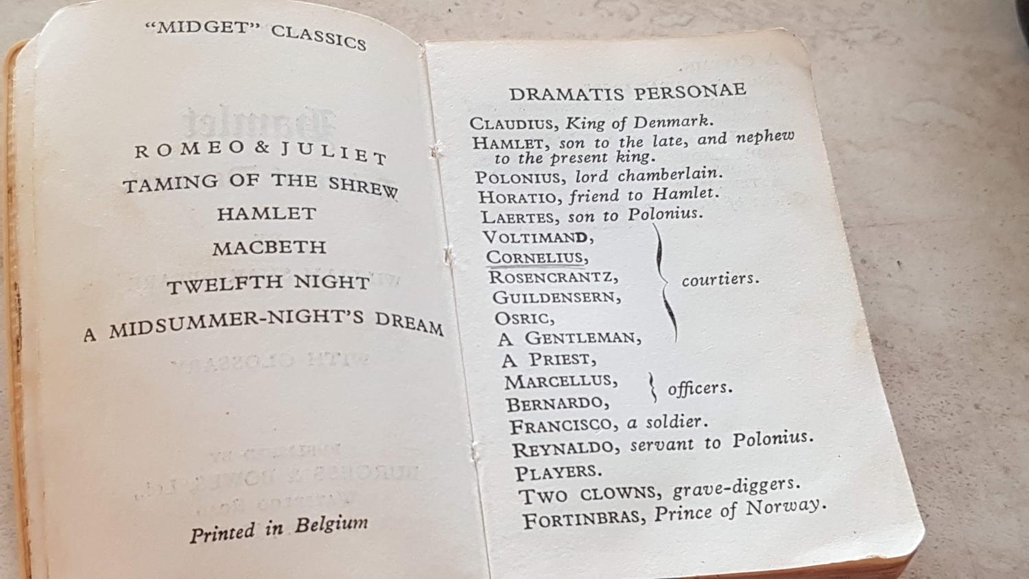 "Hamlet Prince of Denmark" by William Shakespeare Mini Book by Burgess / Bowes Midget Classica (Circa 1960 - 70's), (8cm x 5.5cm)
