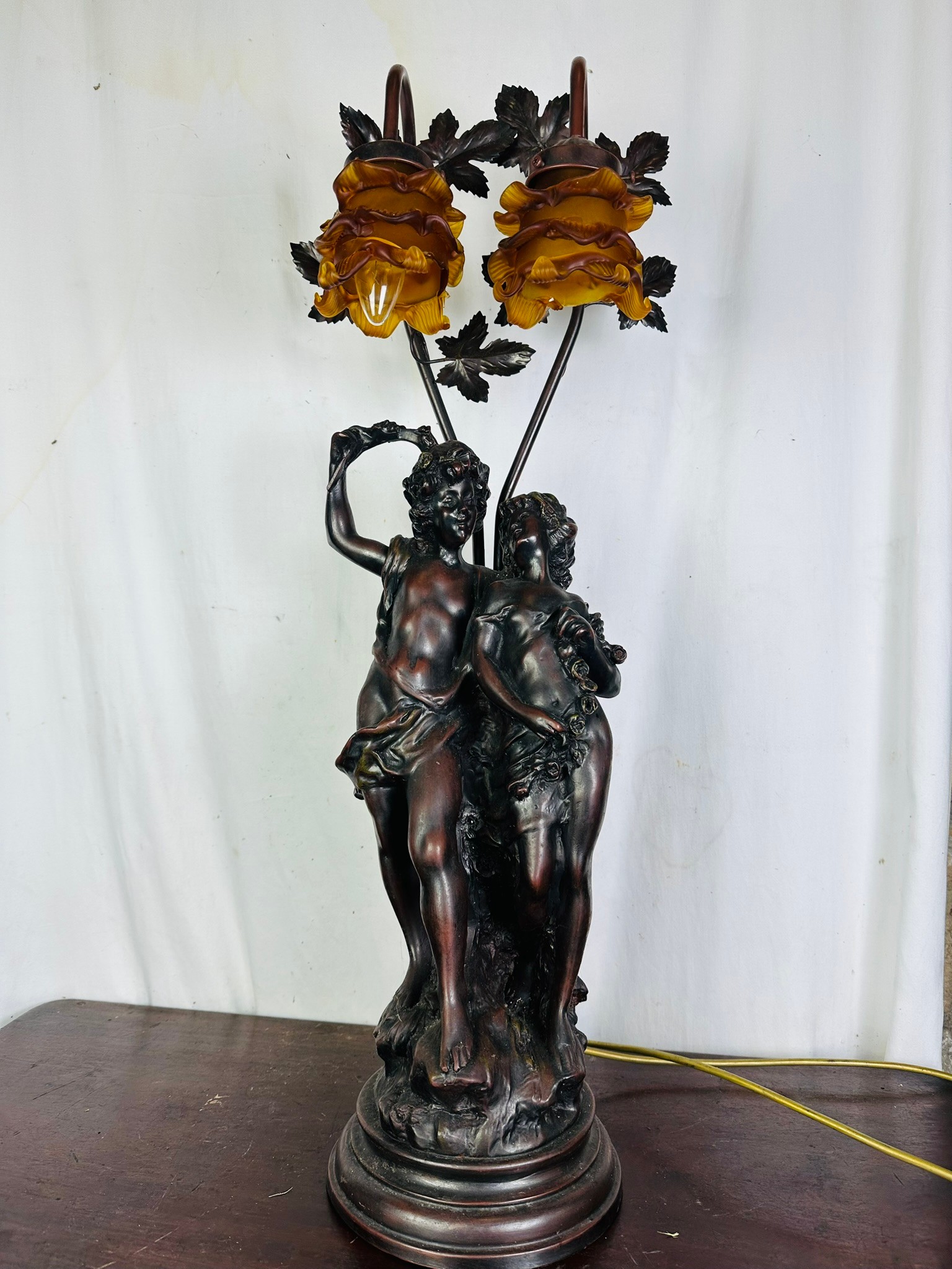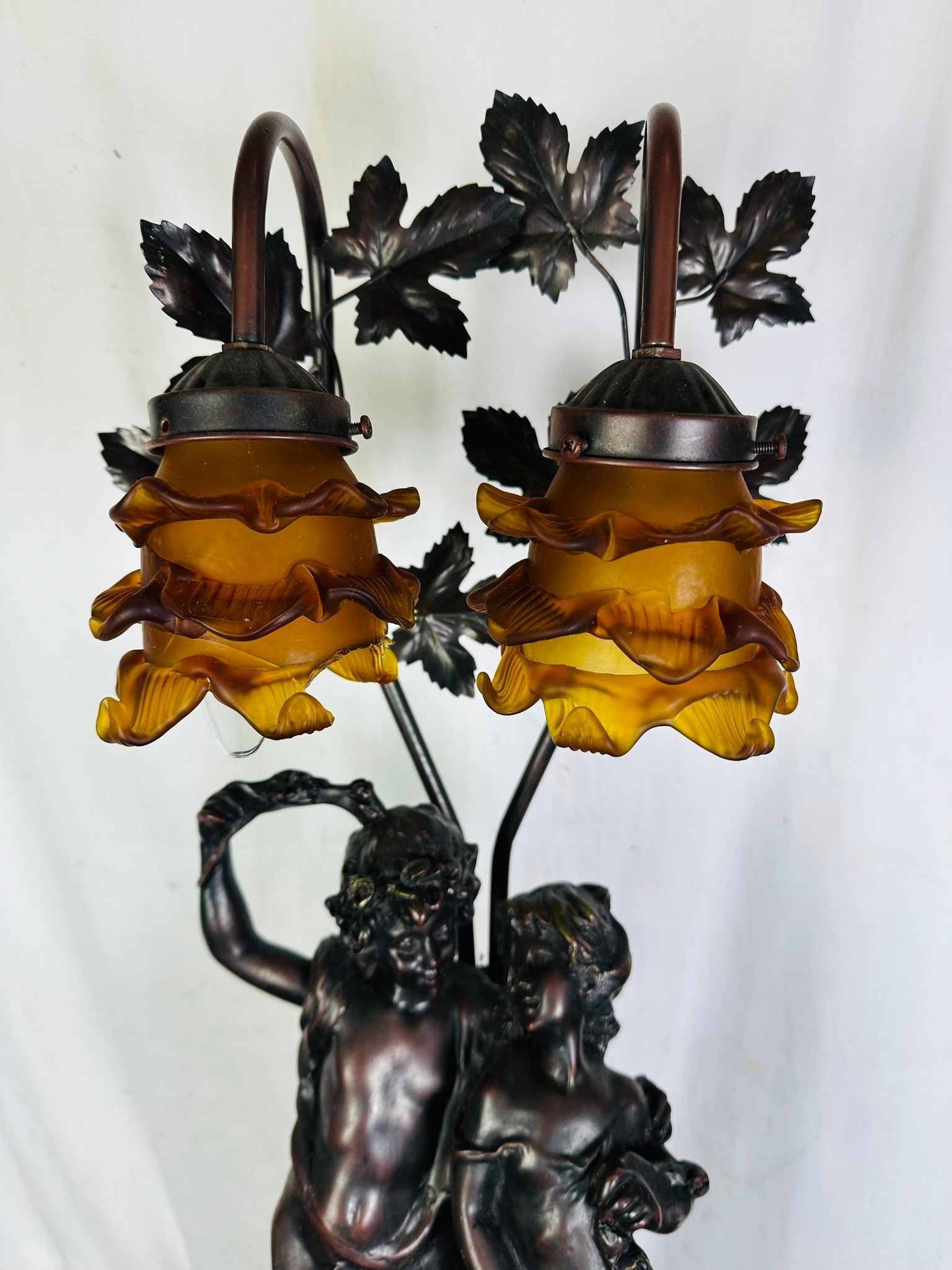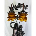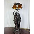A large bronze electric table lamp, 31''h (one shade is broken)
