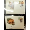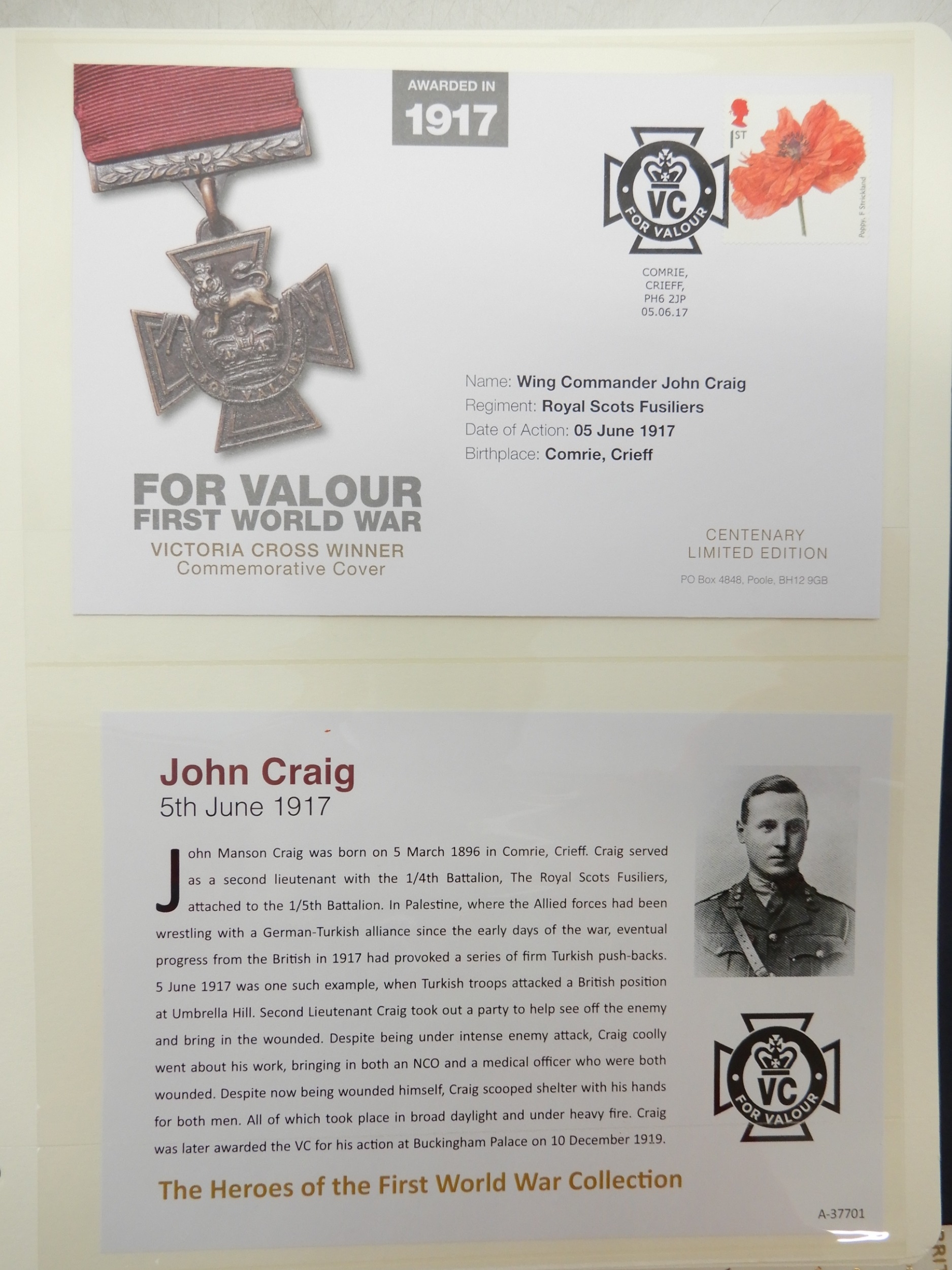 Collection in Carboard Box containing 6 albums and a small metal box. The metal box contains a small quantity of GB and New Zealand Booklets, 1 Album contains U/M New Zealand, Cook Islands plus other stamps inc. GB, Album of World Wild Life Fund, also Album of Special Covers for Heroes of the First World War, all Victoria Cross Awardees with Special Postmarks exactly 100 years after date of action. seems to cover 1916 and 1917. Plus many other stamps etc.