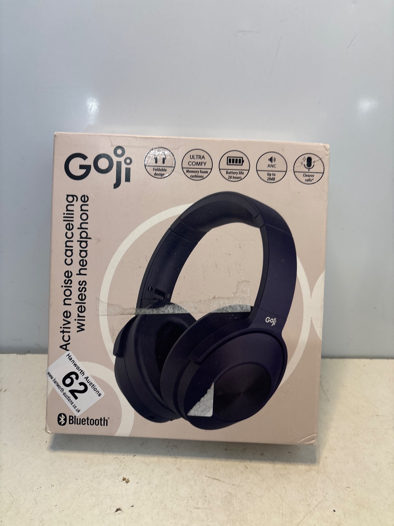 Goji active noise-cancelling Bluetooth headphones in original box.