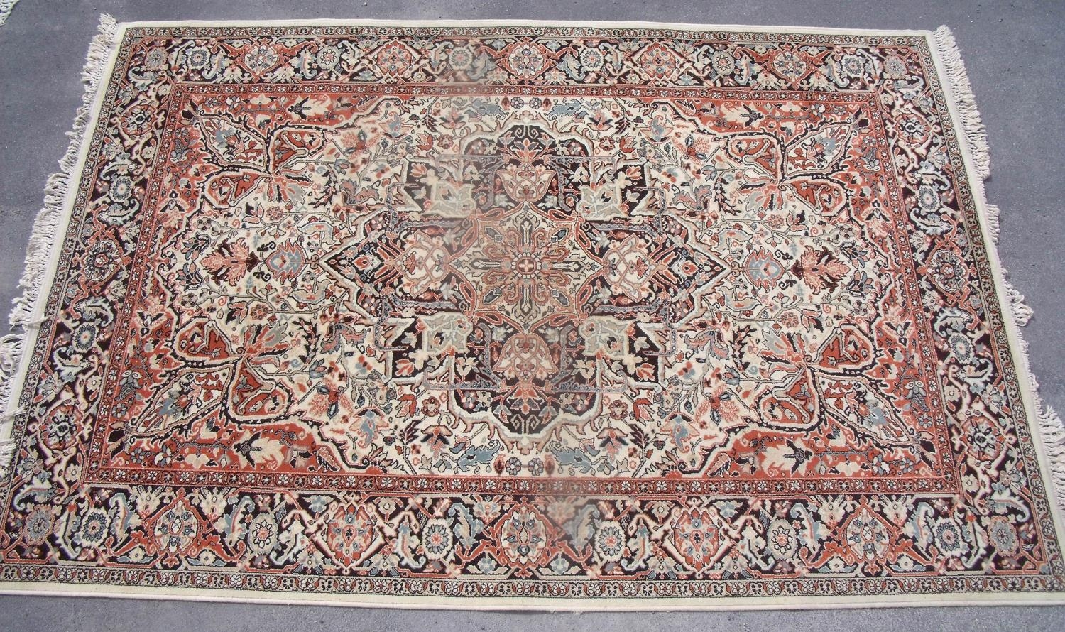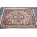 Traditional Keshan wool rug, terracotta and beige ground central stylised floral medallion with patterned border (300cm x 200cm)