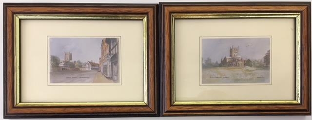 A pair of prints of Tewkesbury (Abbey & Church Street) by Heather Simmonds.