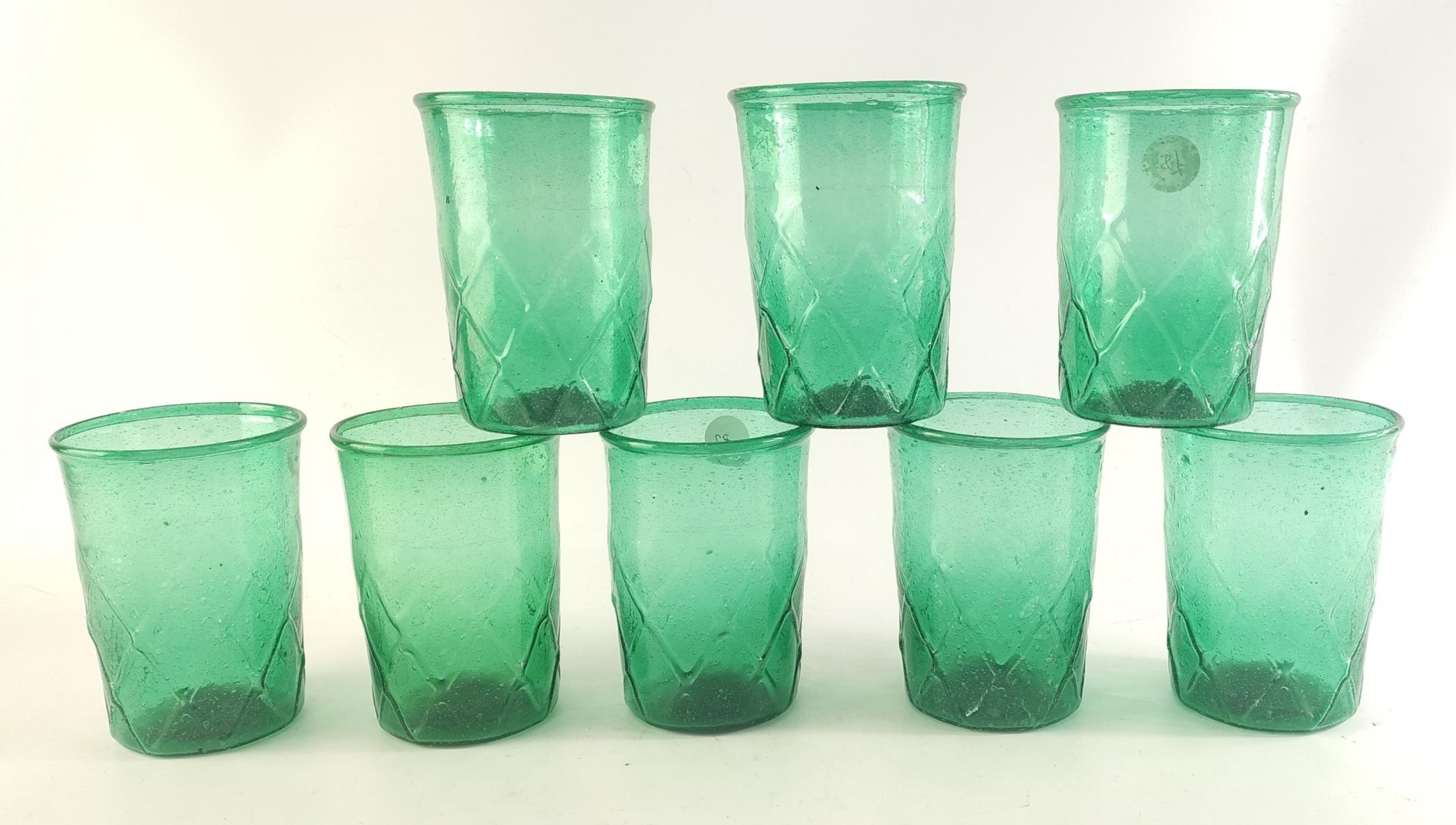 XMAS GIFTING IDEAS! Eight sea green recycled bubble glass tumblers. RRP £13 each