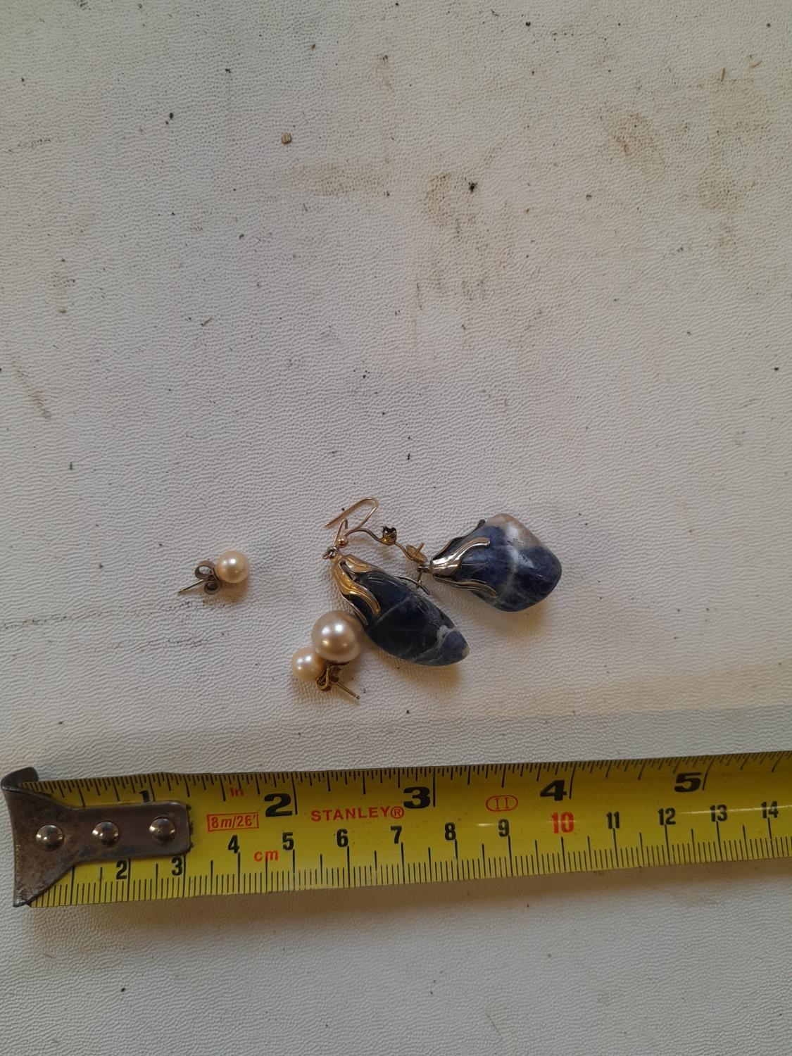 Pair of pearl earrings and one other and pair of blue hardstone earrings set in gold