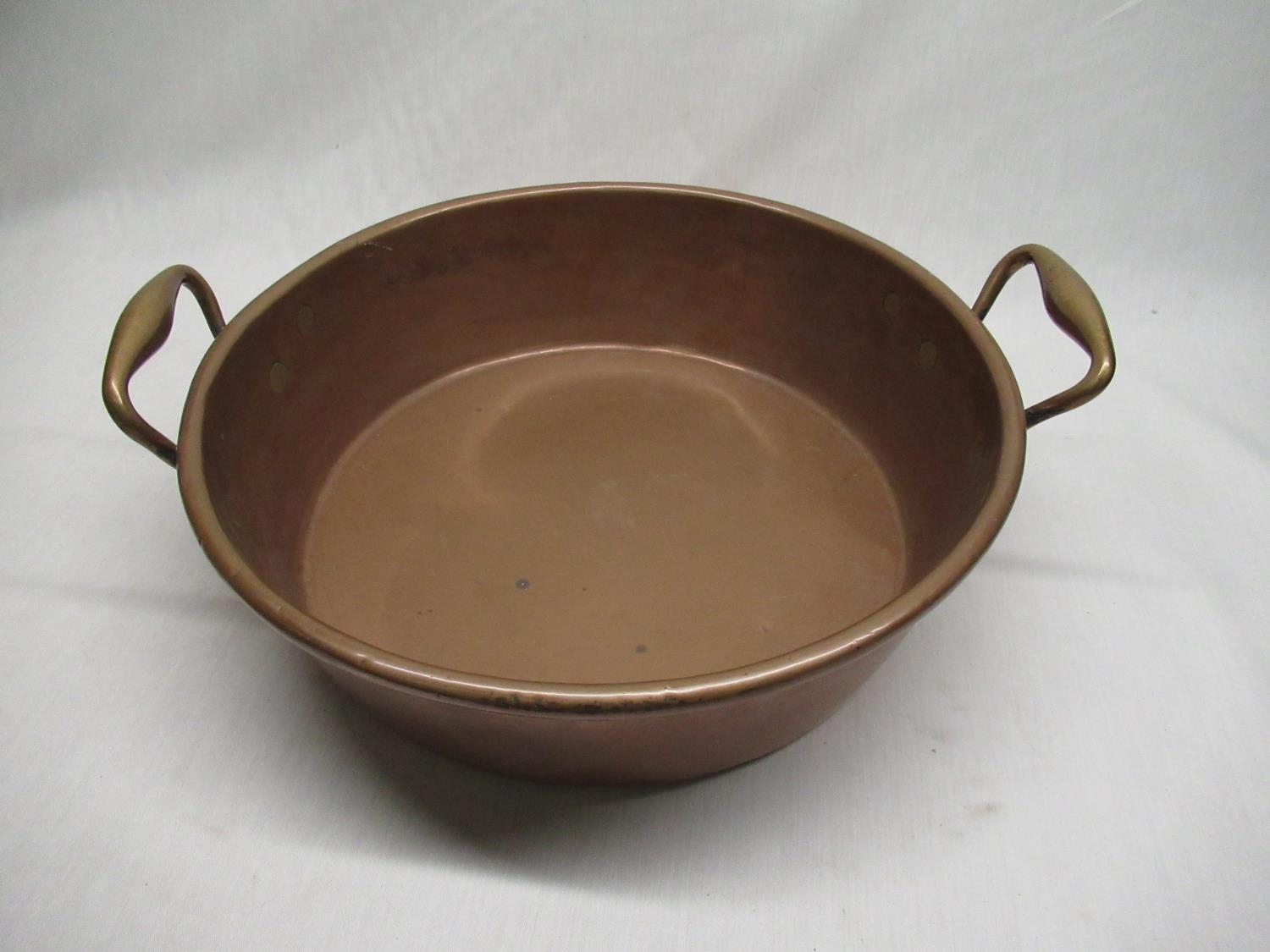 Late C19th/early C20th twin handled copper jam pan.