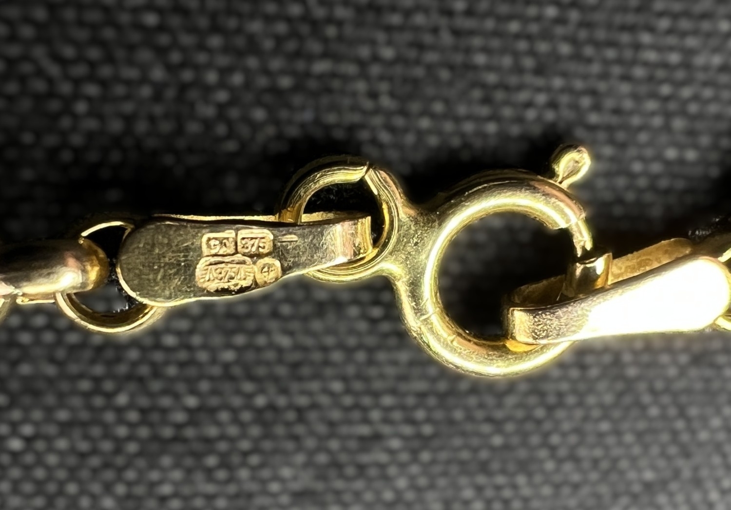 A 9 carat hallmarked gold Belcher chain necklace, 2.8gm, length 46cm