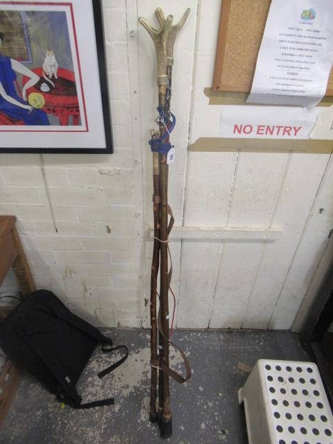 THREE ANTLER WALKING/WADING STICKS