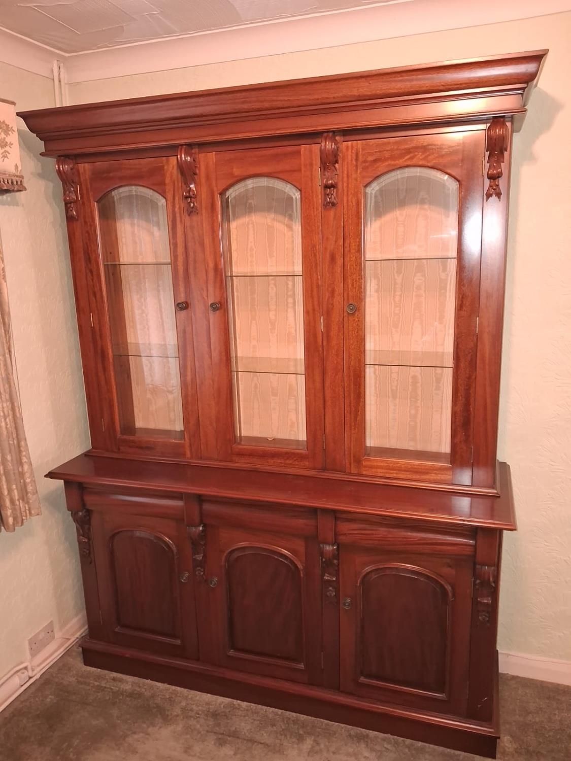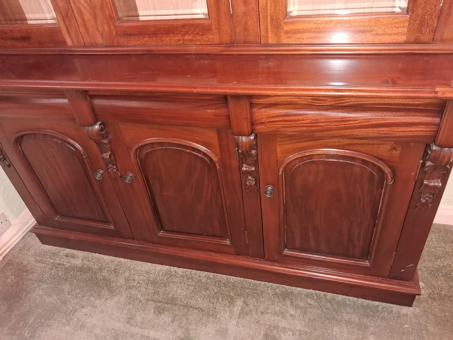 Reproduction 3 Door Glazed Bookcase With Cupboard