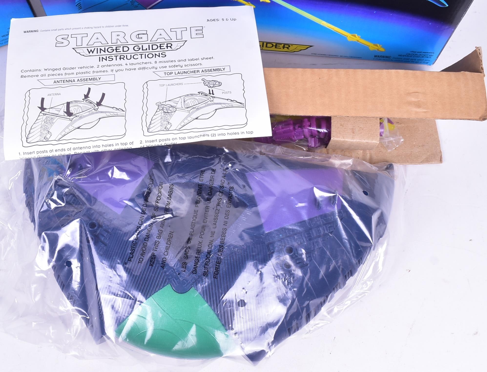Stargate - Hasbro - x2 action figure playsets ' Winged Glider ' from the 1994 toy line. One MISB remaining factory sealed, the other opened but contents mint and still sealed within their bags etc. One box lightly crushed. All contents mint and untouched / as new.
