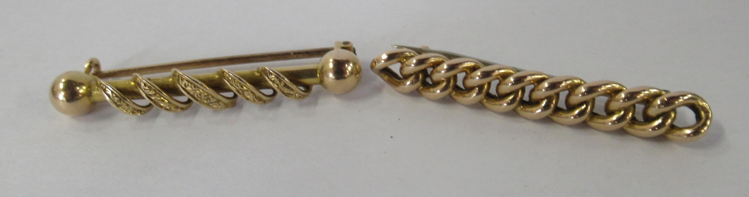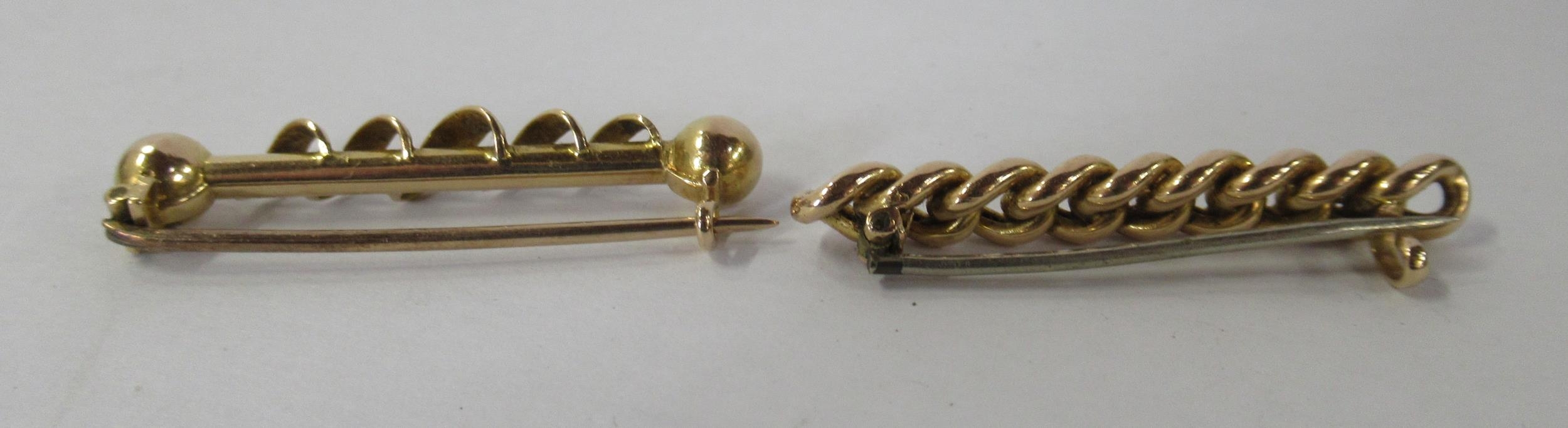 Two gold coloured bar brooches