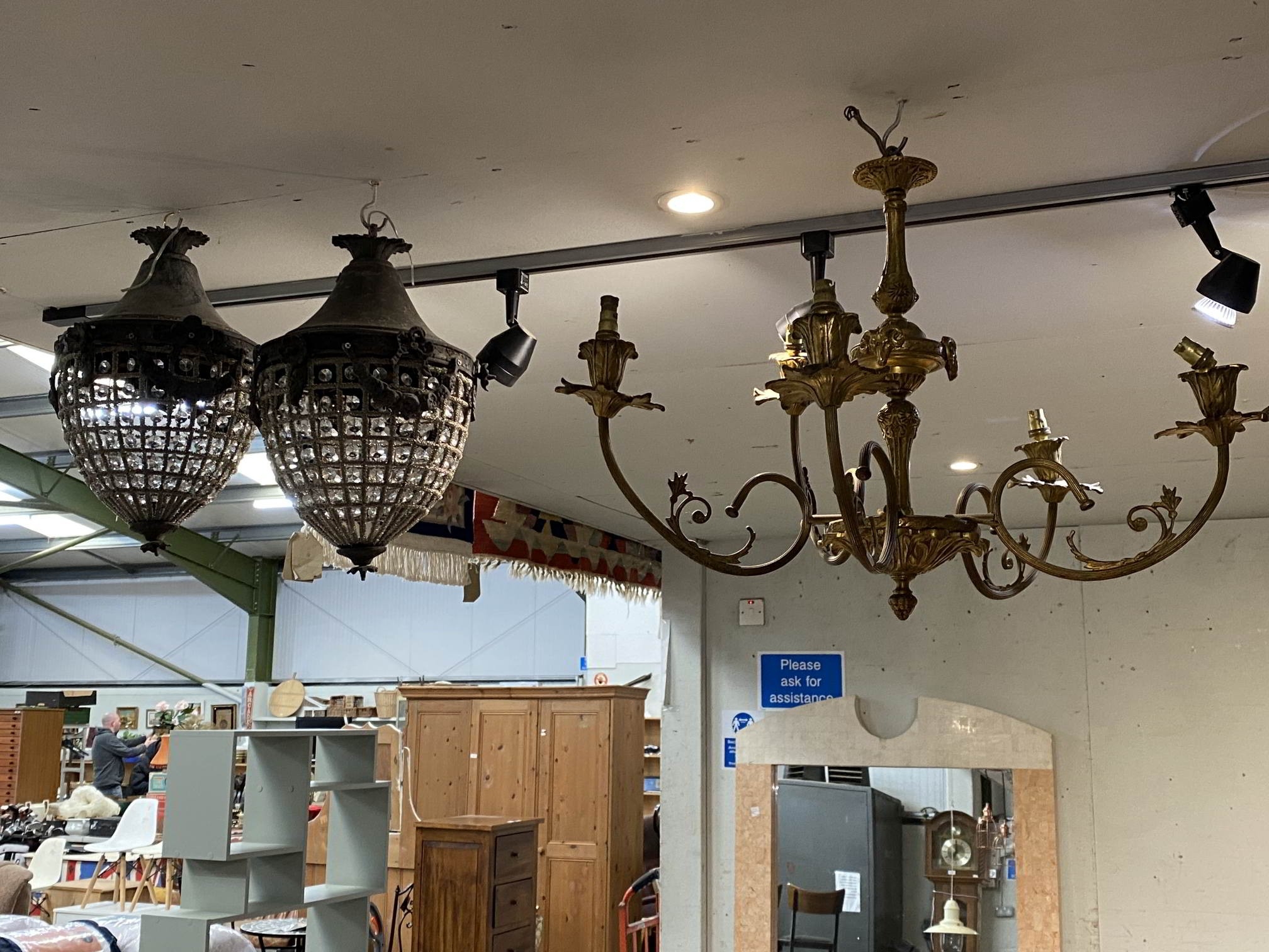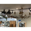 Pair of baroque style chandeliers & a brass effect light fitting