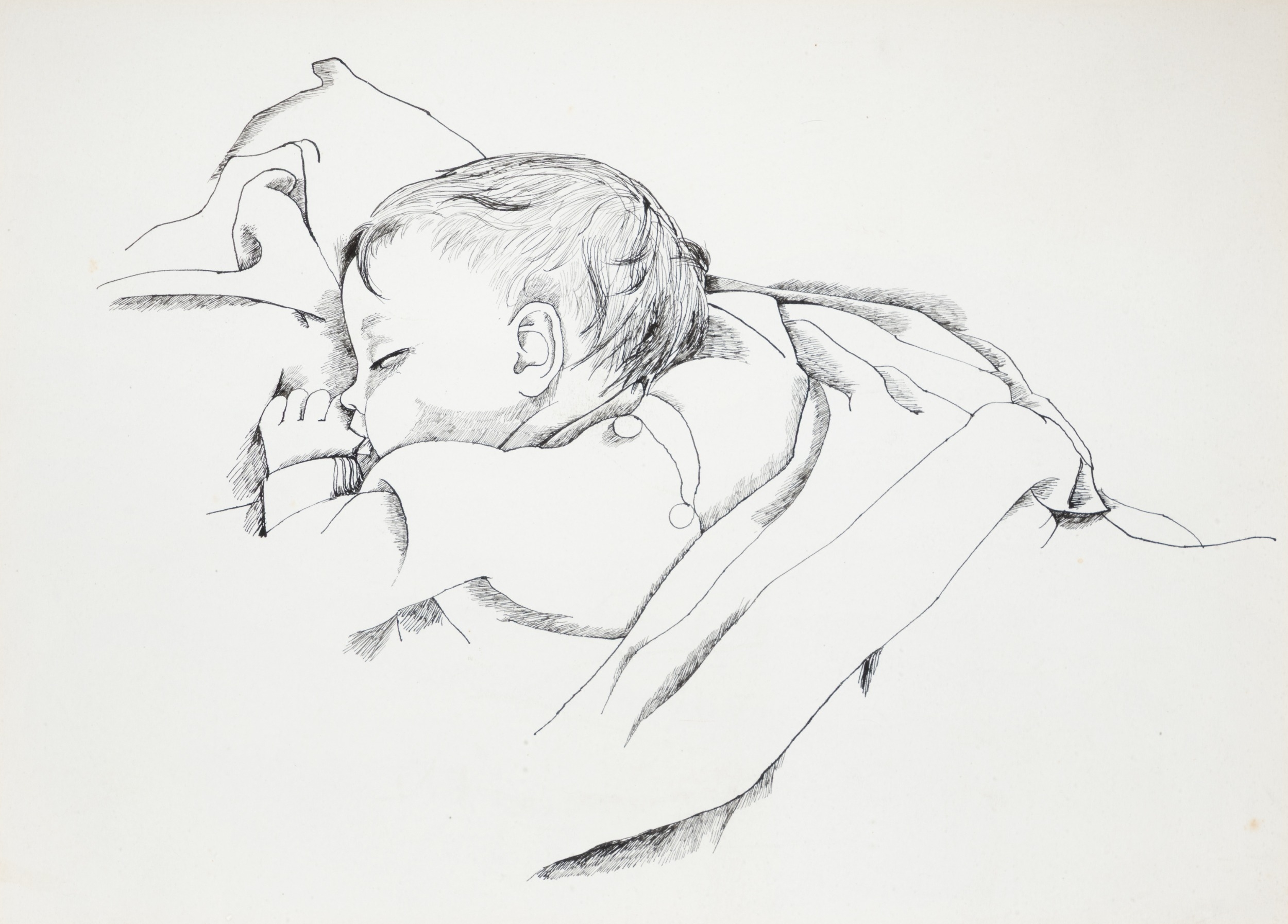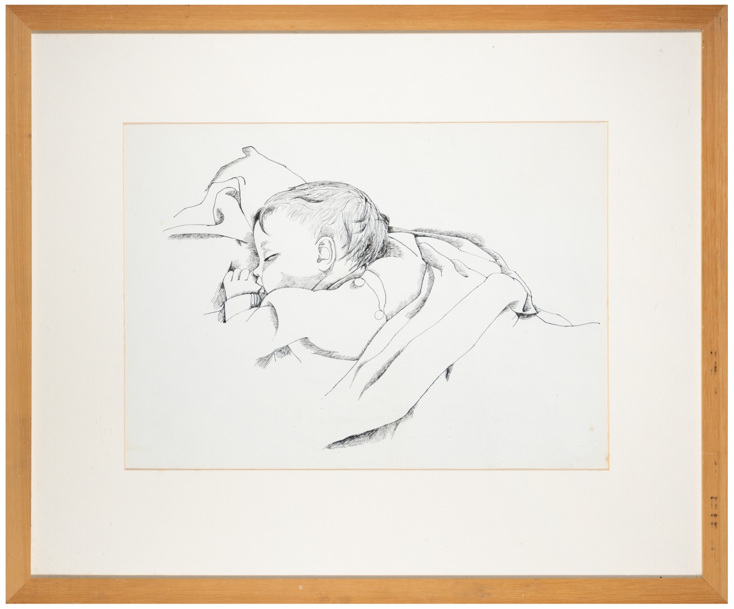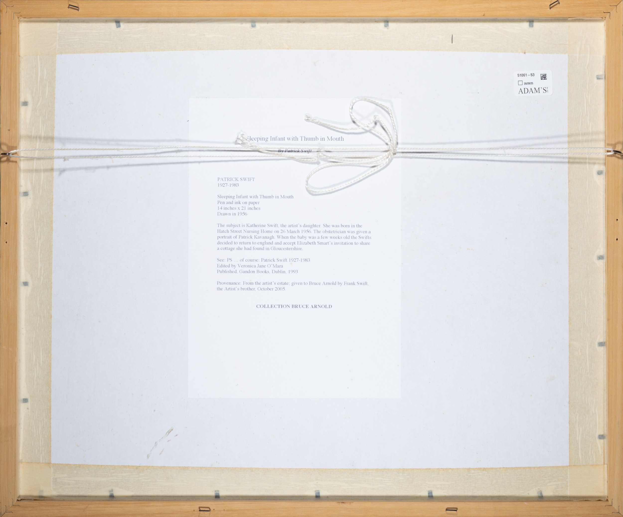 Patrick Swift (1927-1983) Sleeping Infant with Thumb in Mouth Pen and ink, 29 x 41cm The subject is Katherine Swift