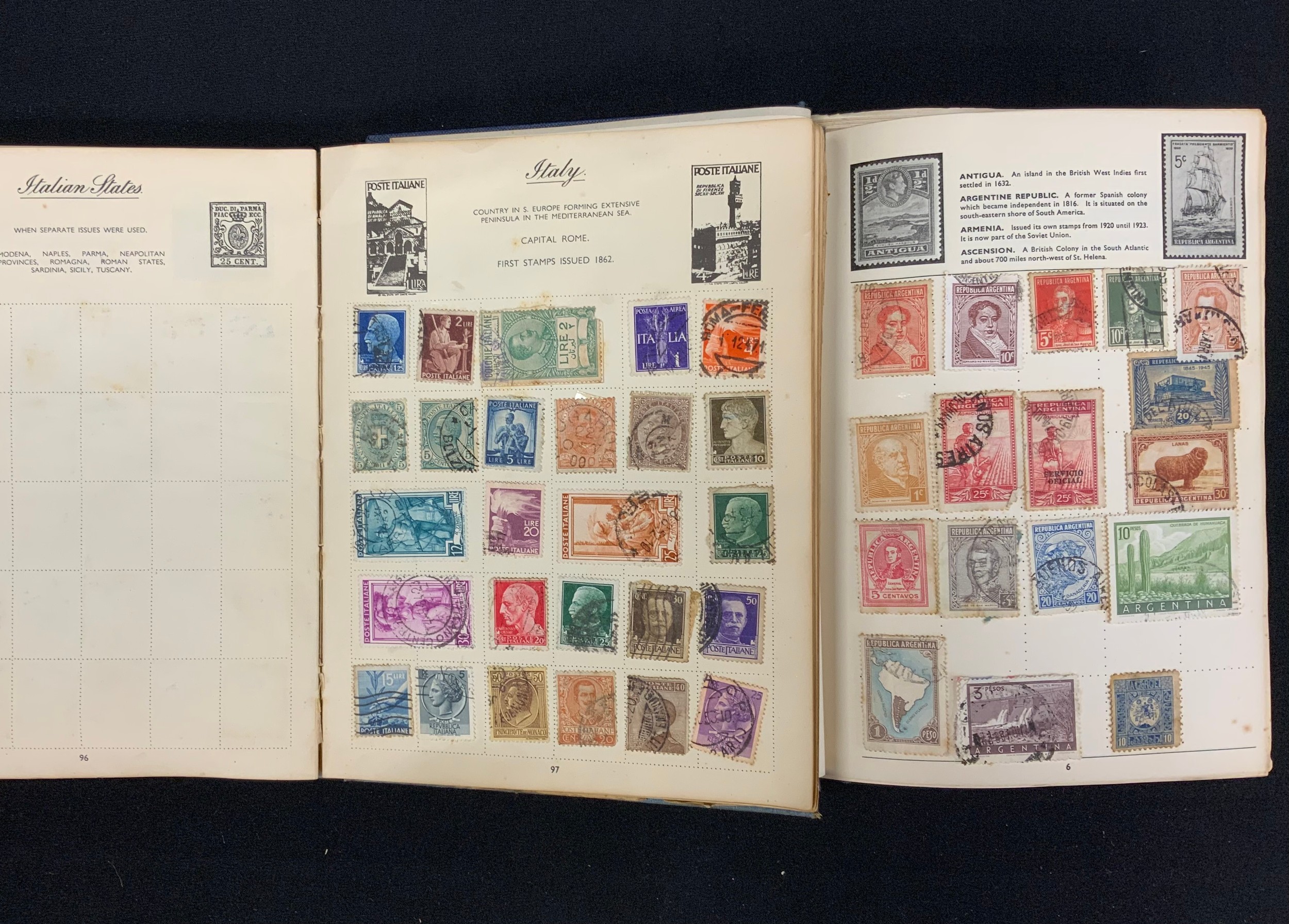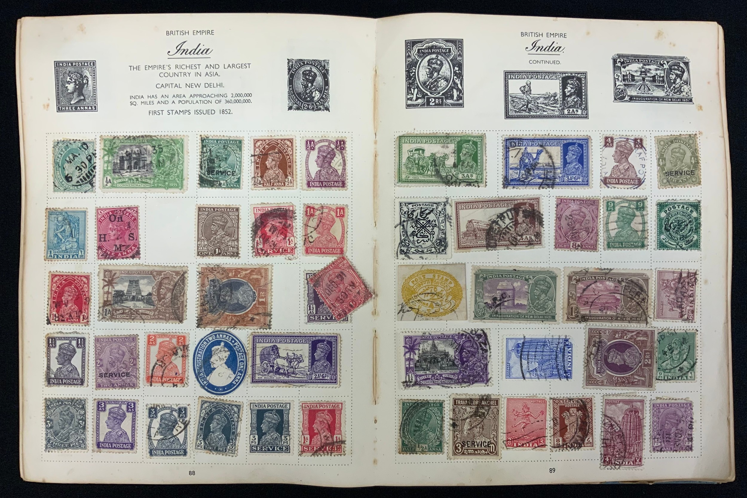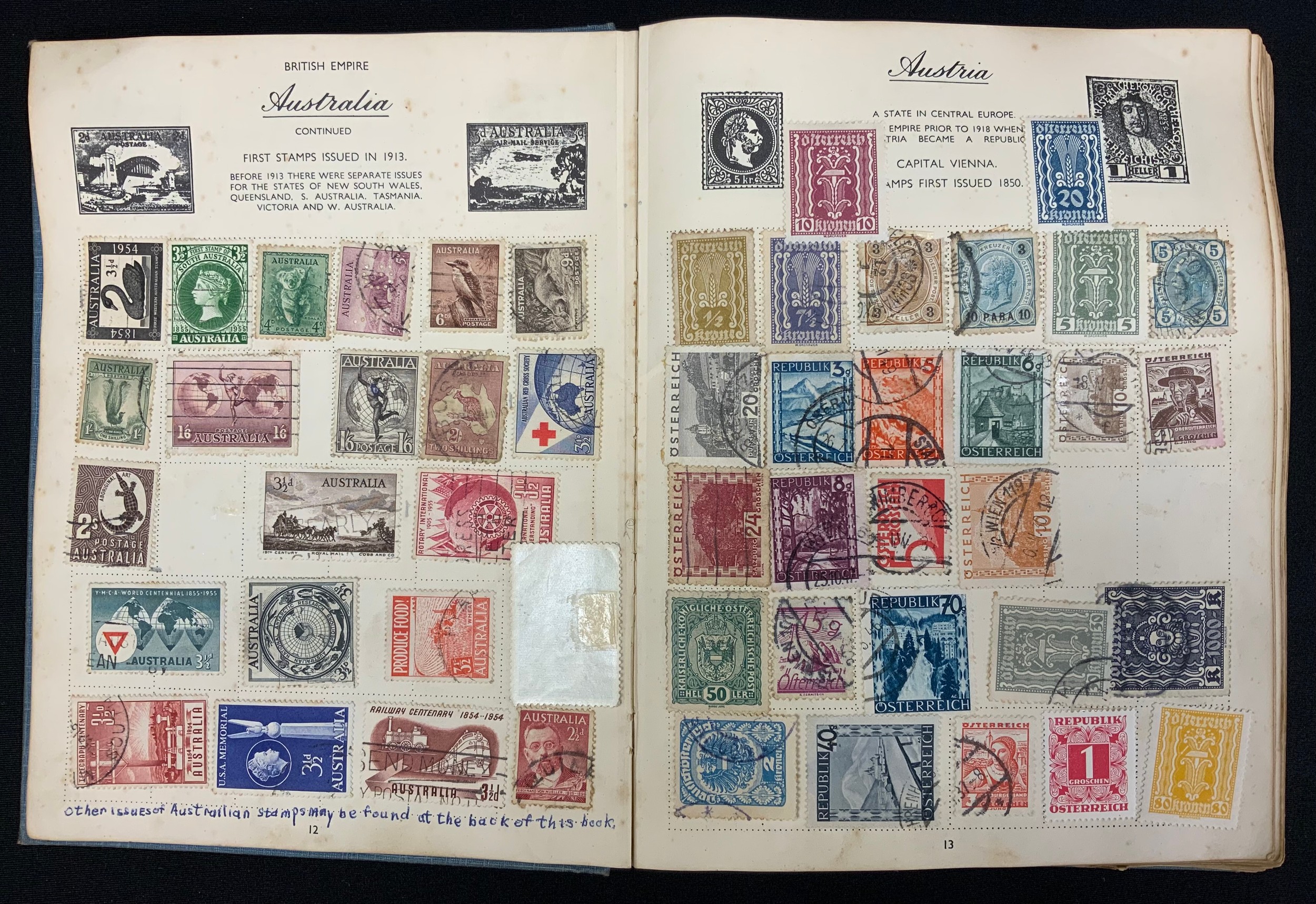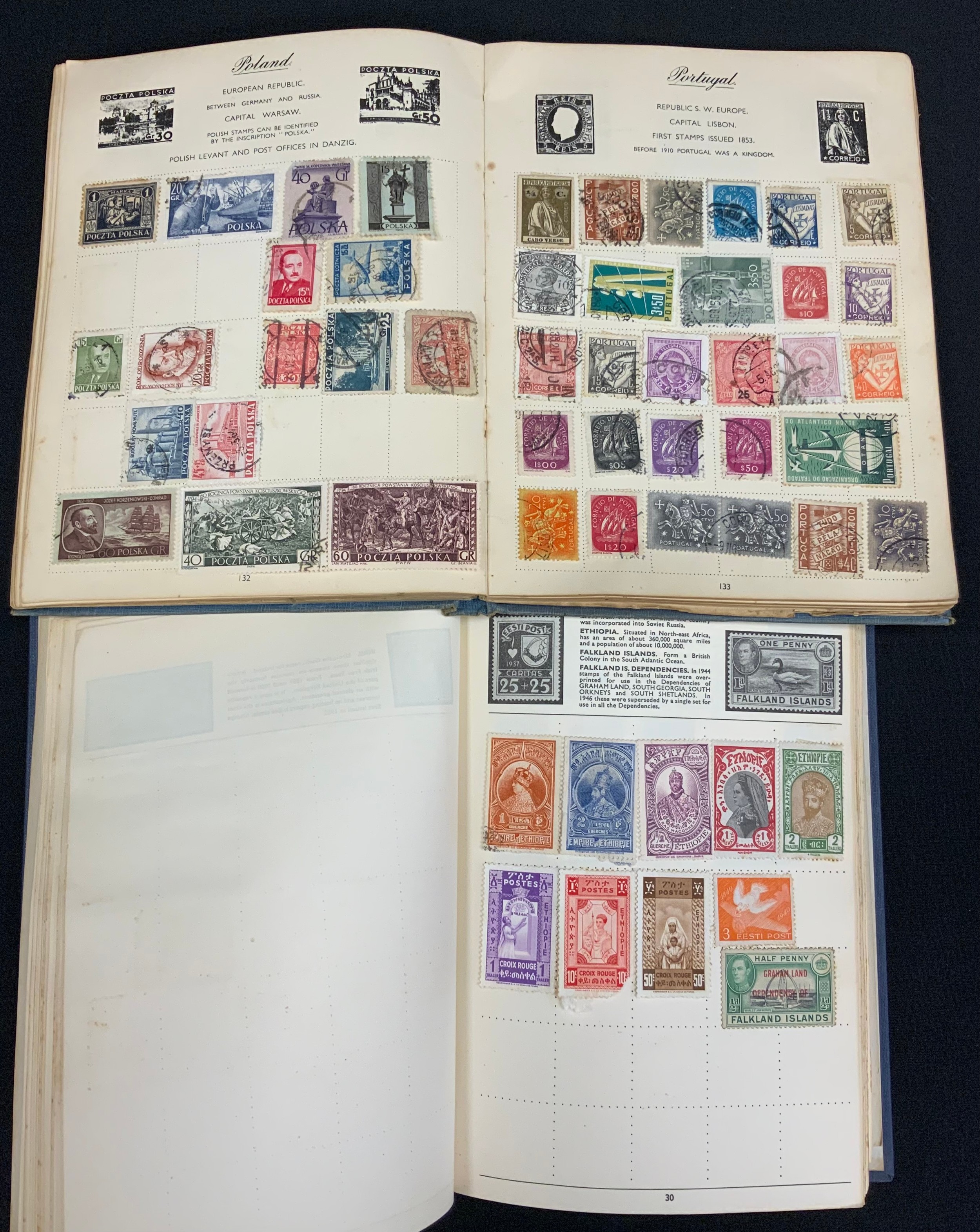 Stamps - all world collection in 2 albums - including GB, Germany, China, America, Manchuria, India, Holland etc qty