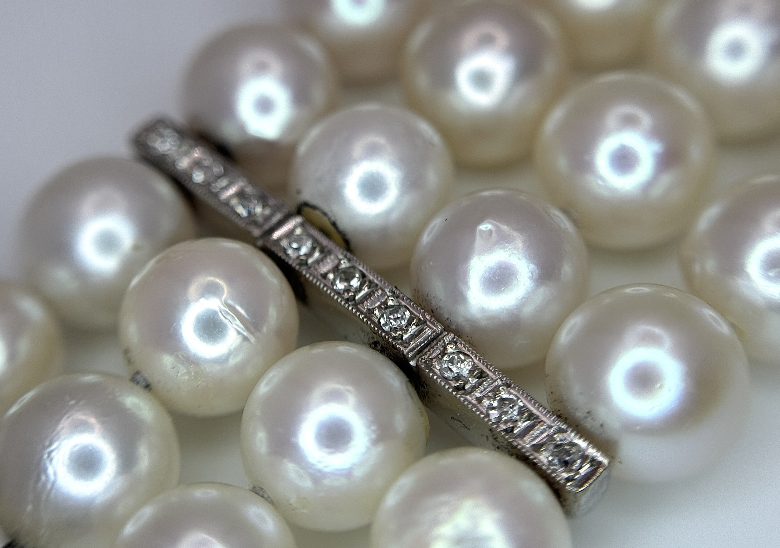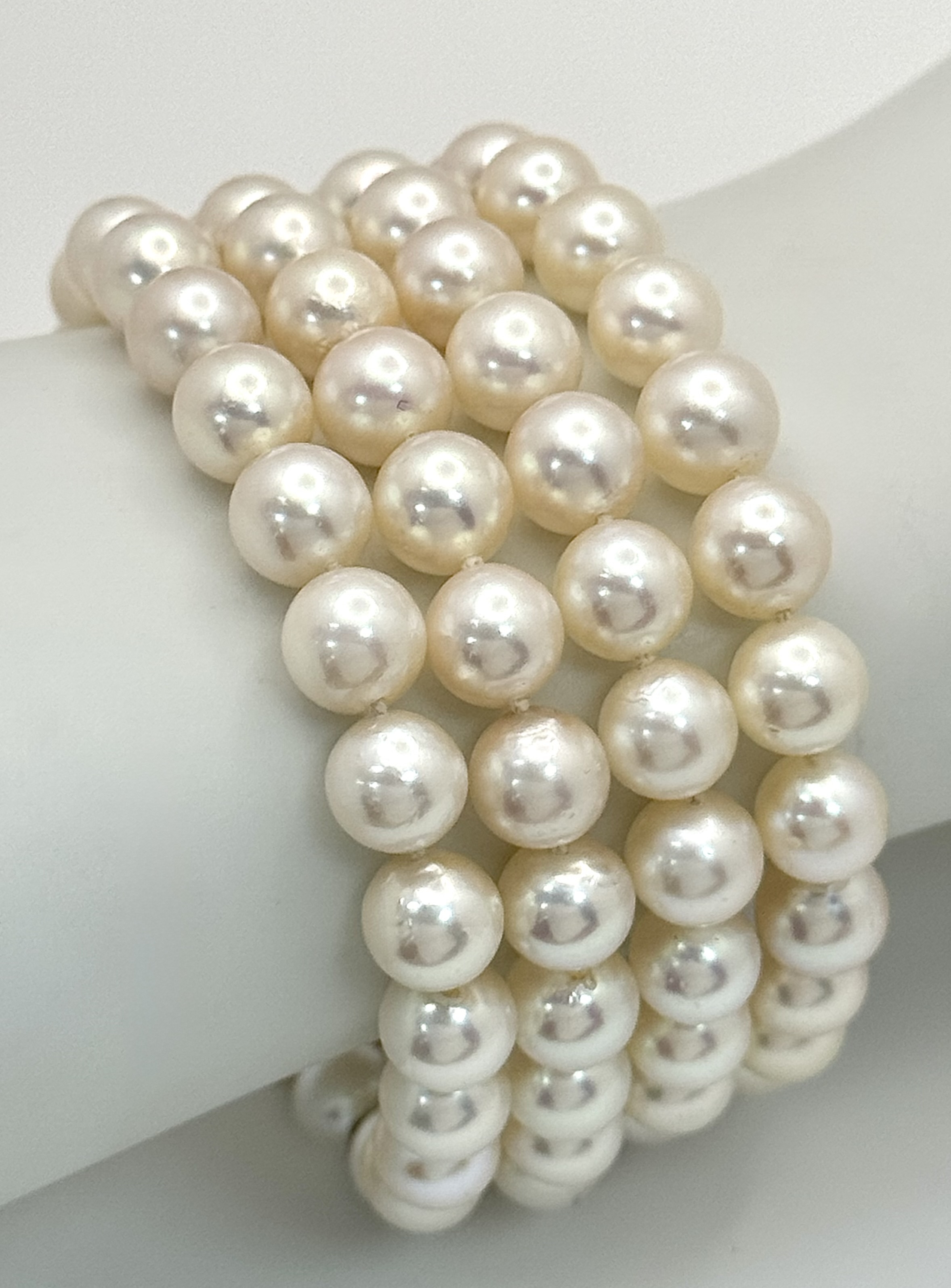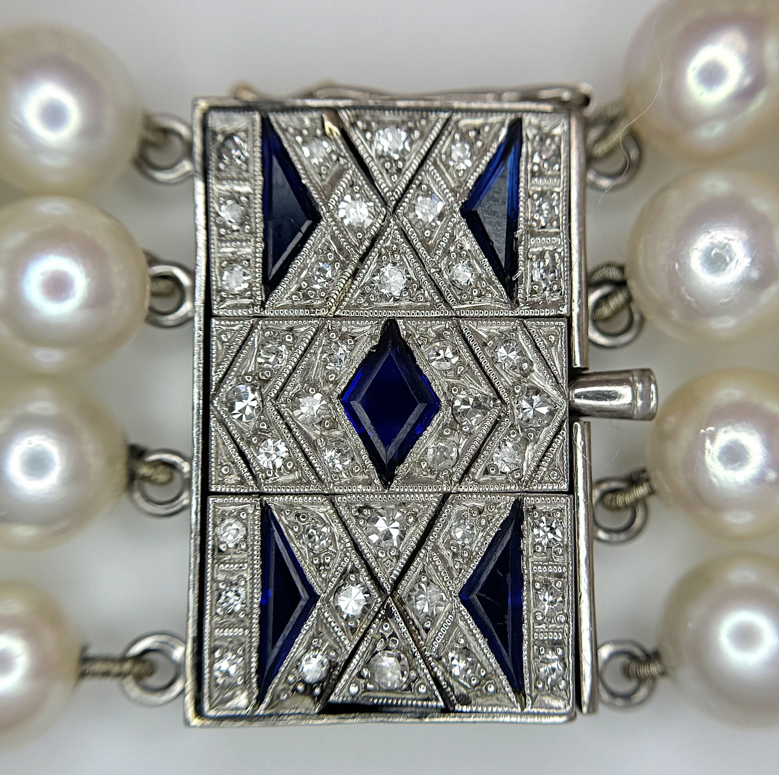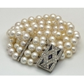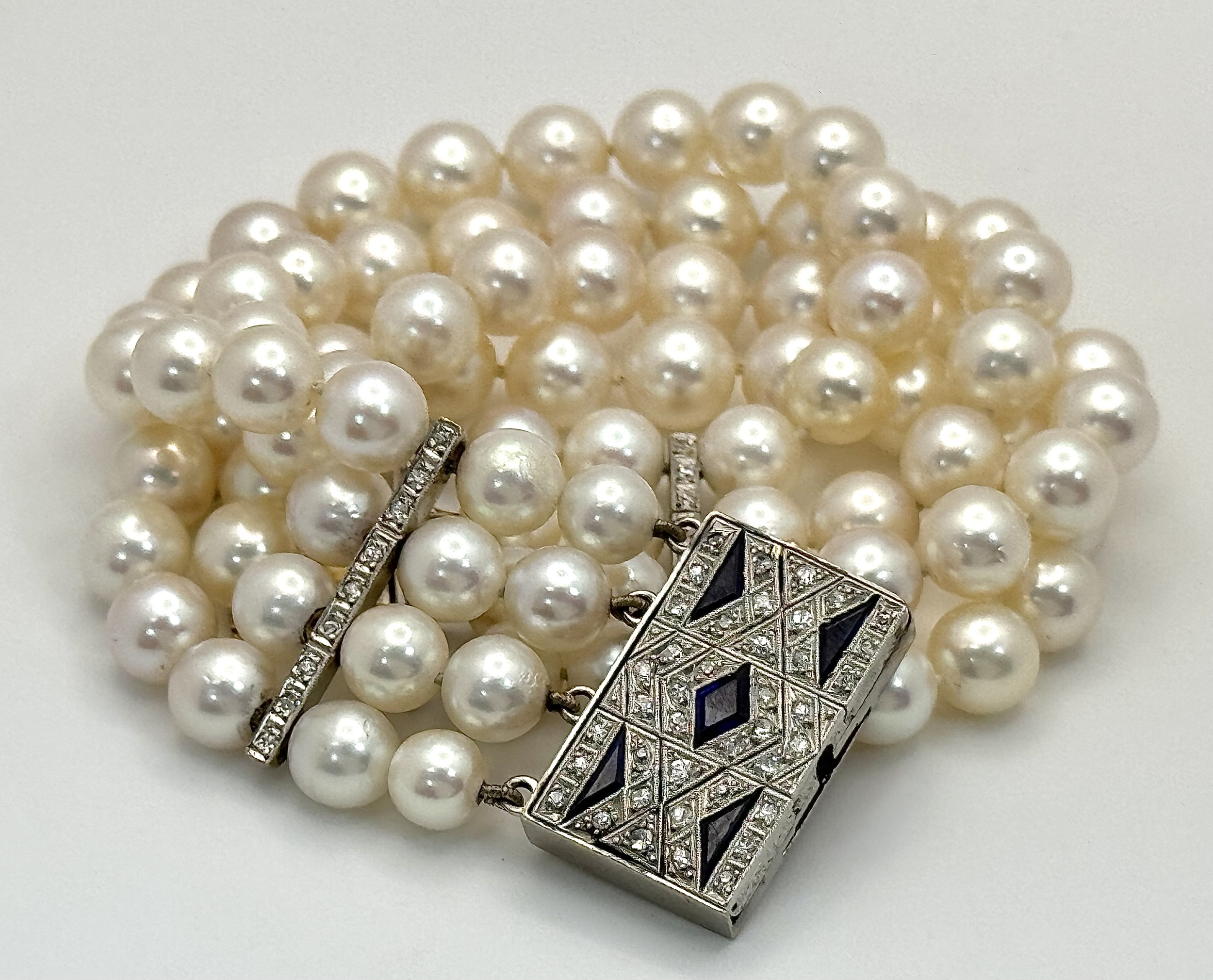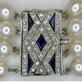 A FOUR ROW AKOYA PEARL BRACELET WITH A 14K WHITE GOLD DIAMOND AND SAPPHIRE SET CLASP. A BEAUTIFUL PIECE . Ref: JLA 208
