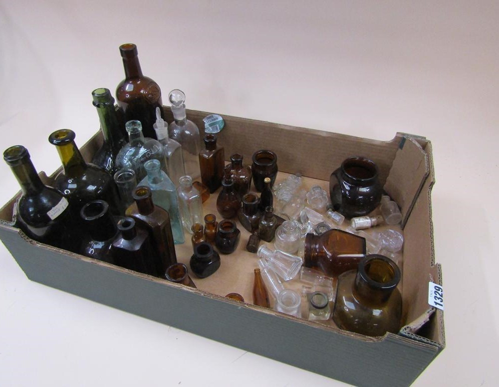 COLL. OF CLEAR AND COLOURED GLASS BOTTLES