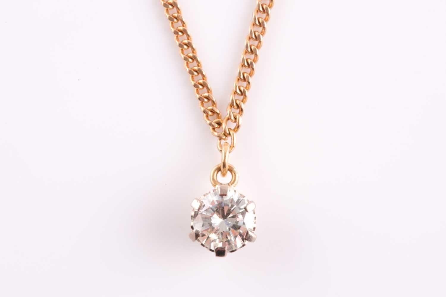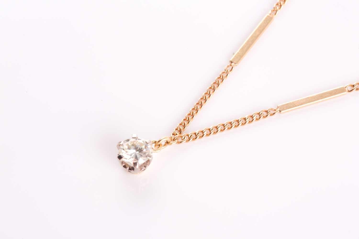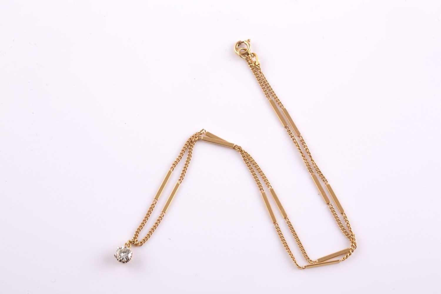 An 18ct yellow gold and solitiare diamond pendant necklace, set with a round brilliant-cut diamond of approximately 0.40 carats, approximate colour / clarity SI2, K/L, on a bar-link chain. 5 grams.