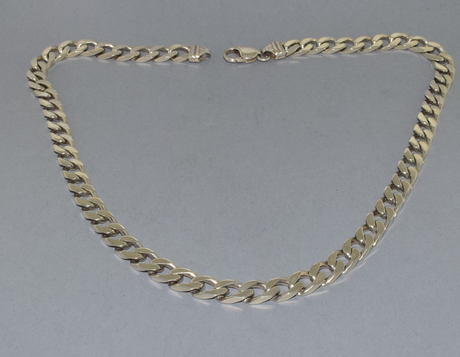 Heavy 925 silver flat link neck chain with lobster claw clasp 48cm long 63grams