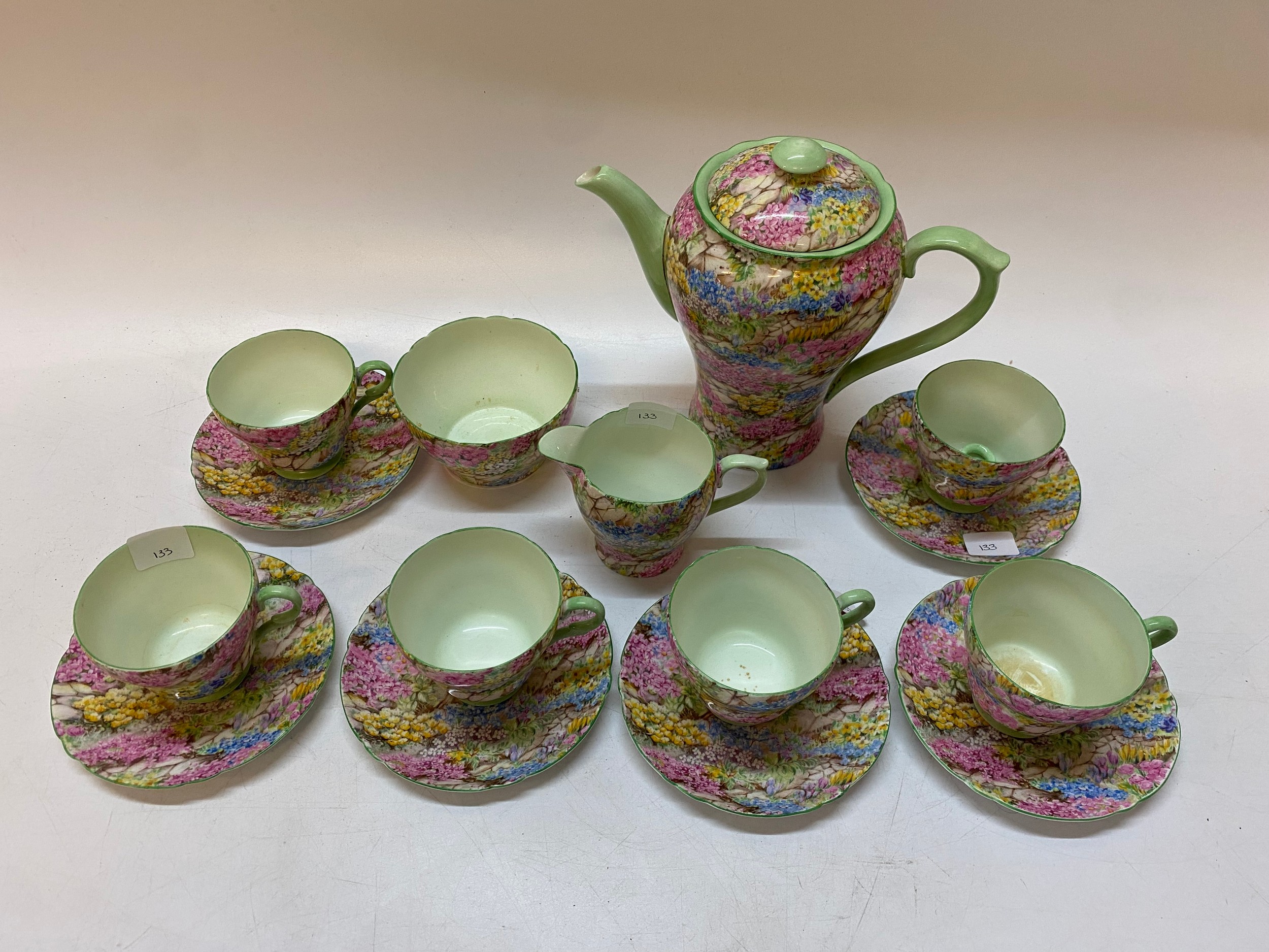 A Shelley Rock Garden pattern part coffee service comprising:- coffee pot, six cups, six saucers, cream jug and sugar basin