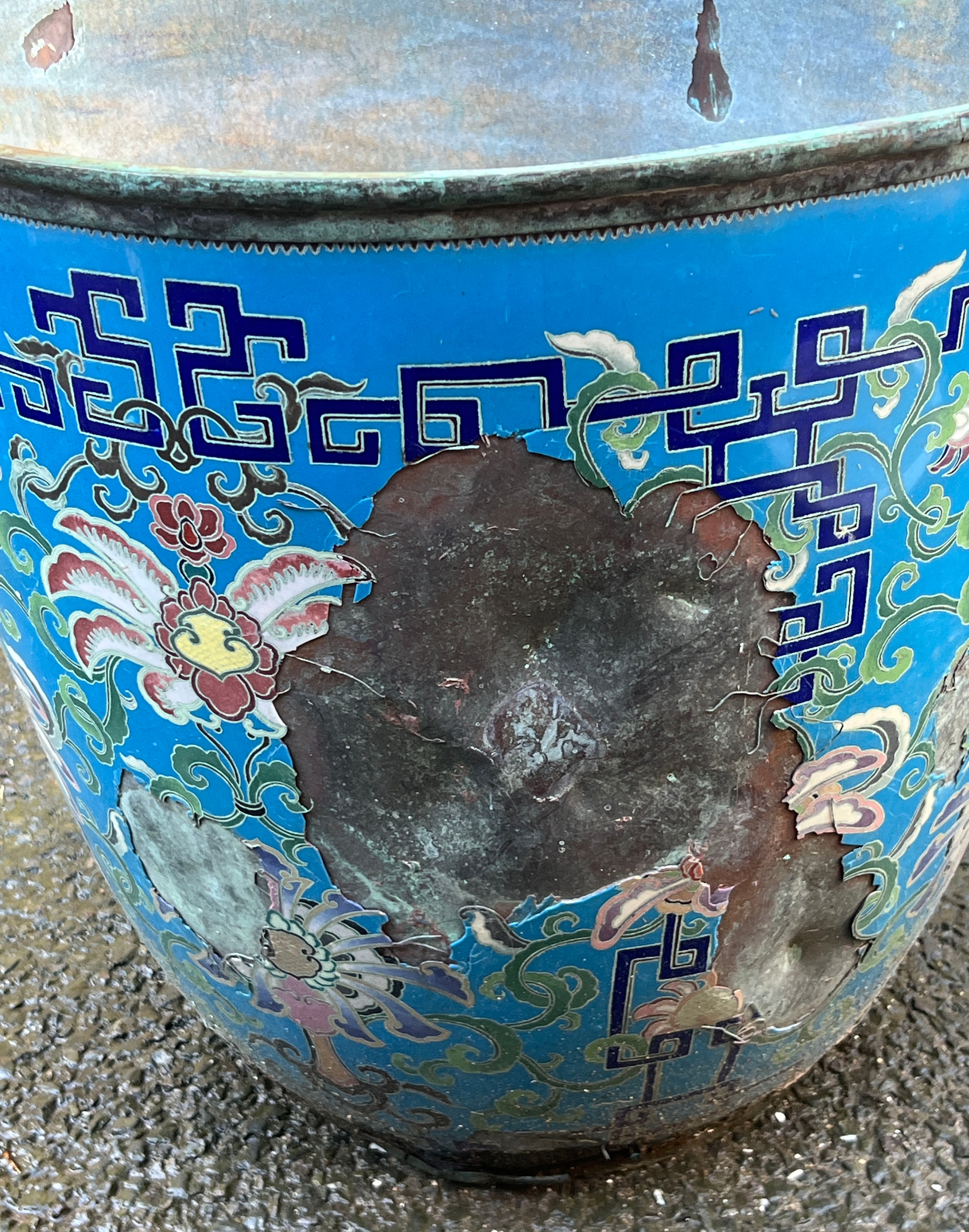 A very large Chinese enamel planter, in poor condition with significant losses, 60cmD 56cmH