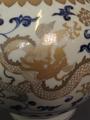 A large Chinese blue and gilt vase decorated with dragons to sides, 6 character mark to base, 14' high