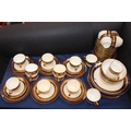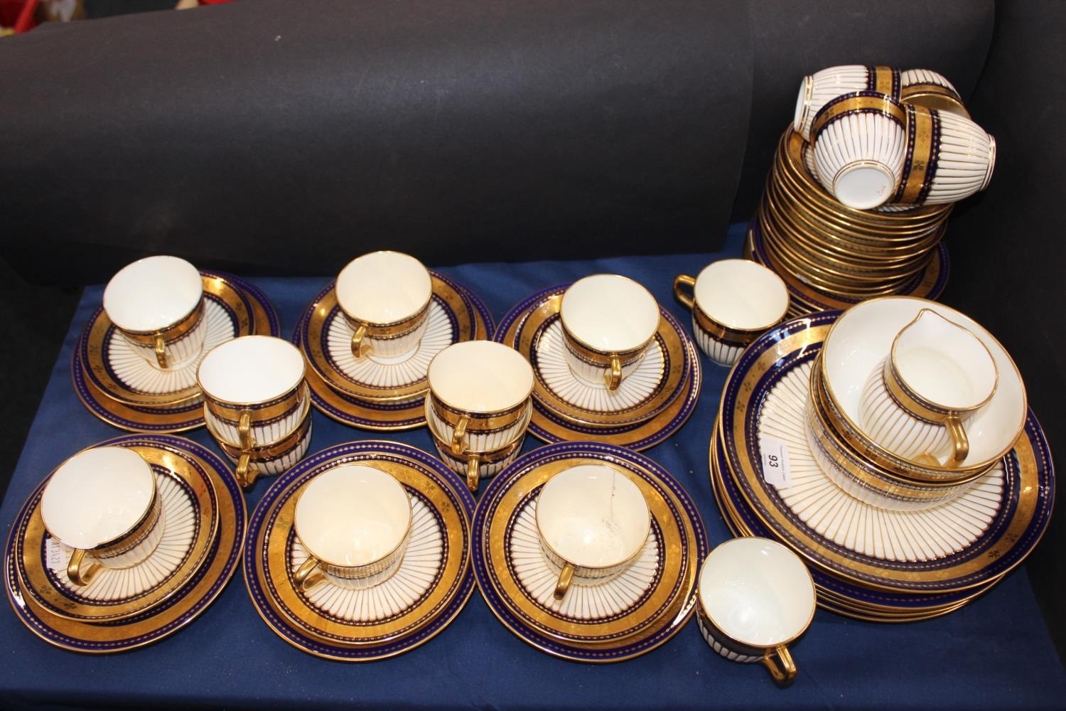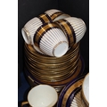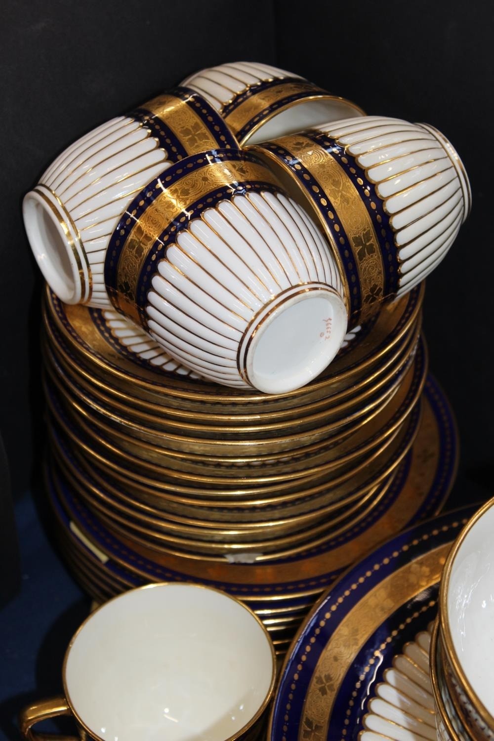 Mintons bone china tea set with cobalt blue borders and decorated with gilt bands, pattern number G6652.