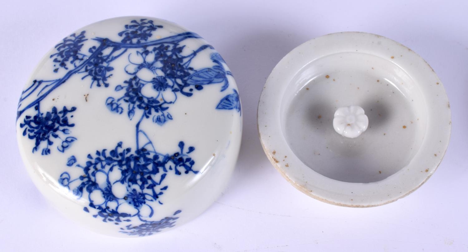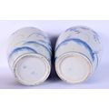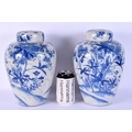 A LARGE PAIR OF 19TH CENTURY JAPANESE MEIJI PERIOD BLUE AND WHITE VASES AND COVERS painted with landscapes. 28 cm x 14 cm.