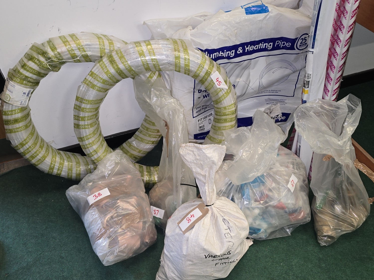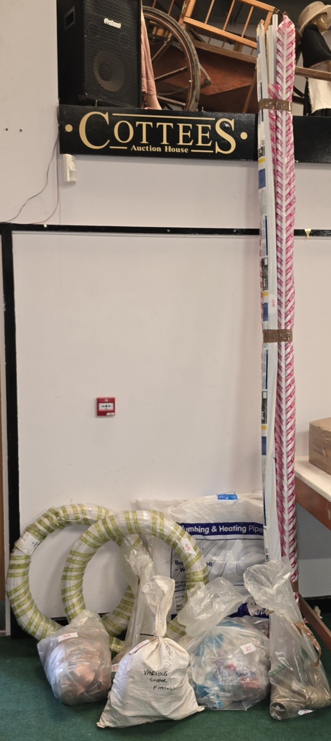 Large quantity of as new lengths of plumbing plastic pipework together with copper pine joints and other fittings. Good lot to look through (REF E40, E47, E44, E45, E41, E43, E48, E37, E38, E36, E42).