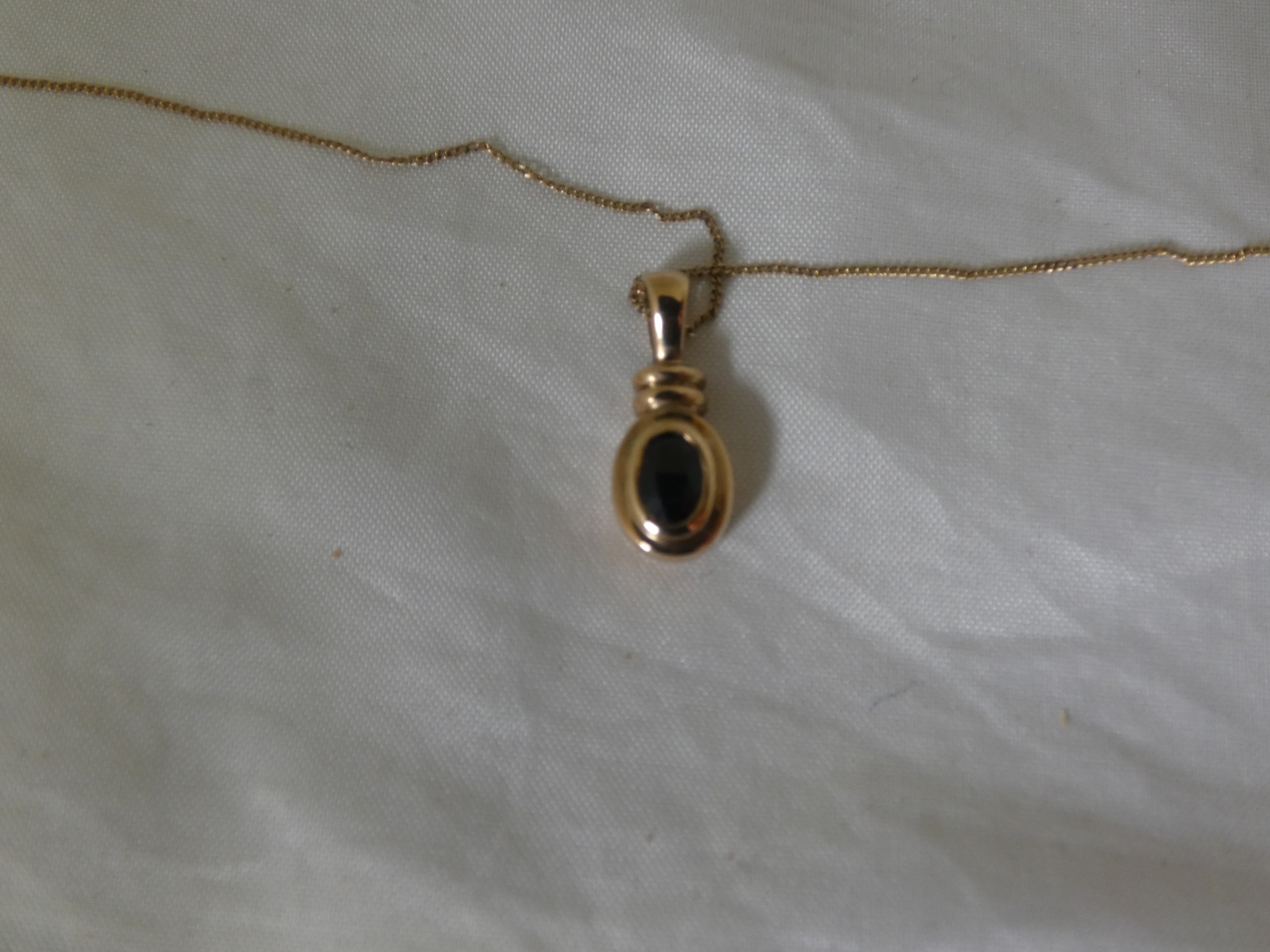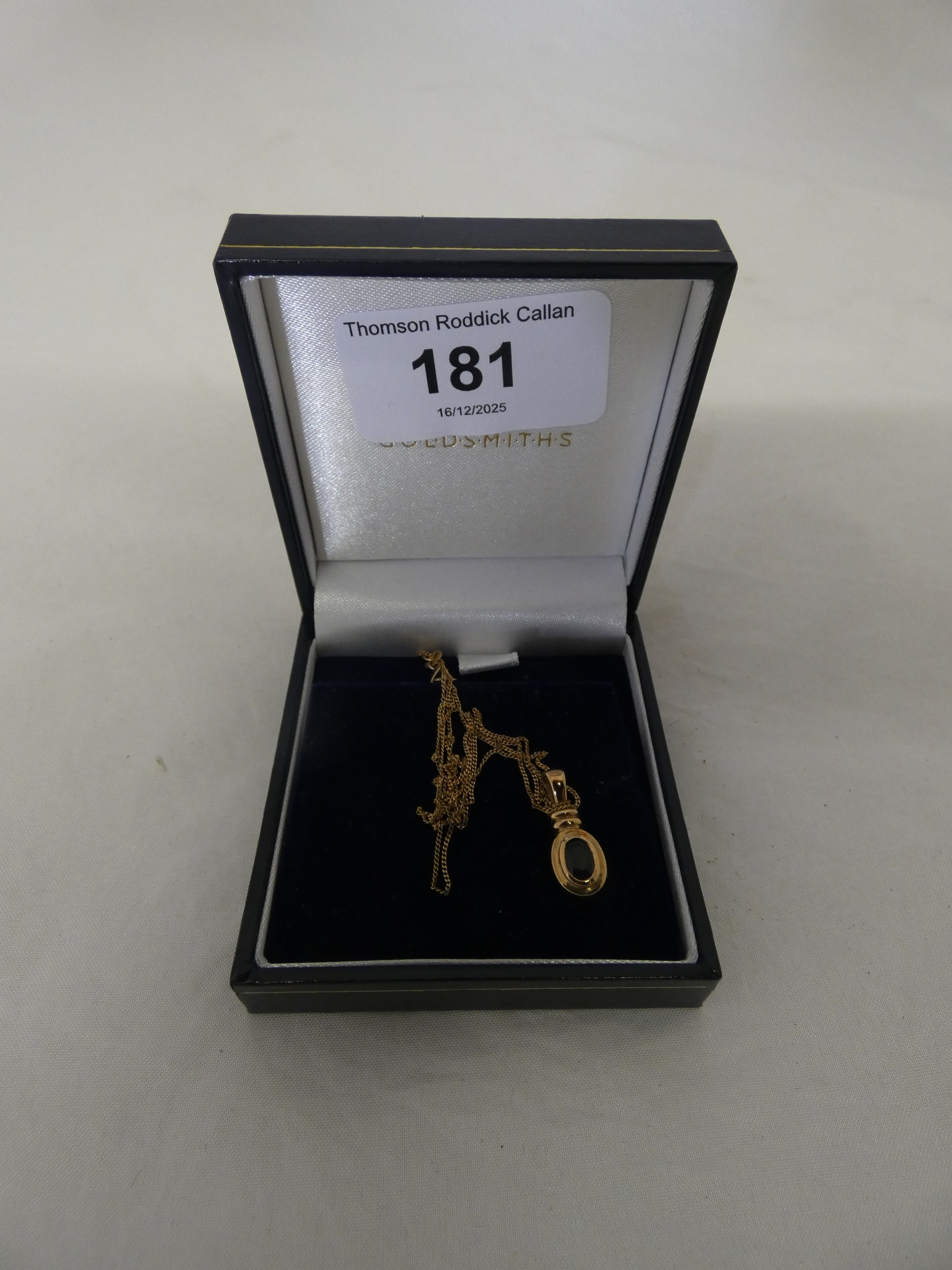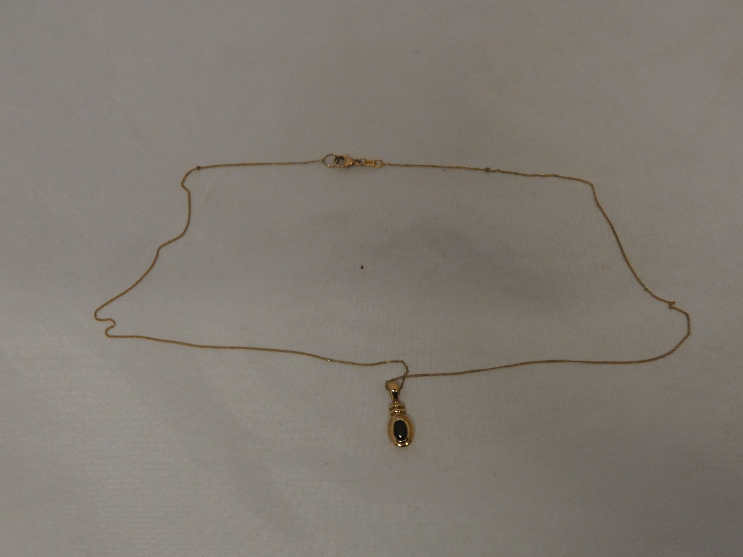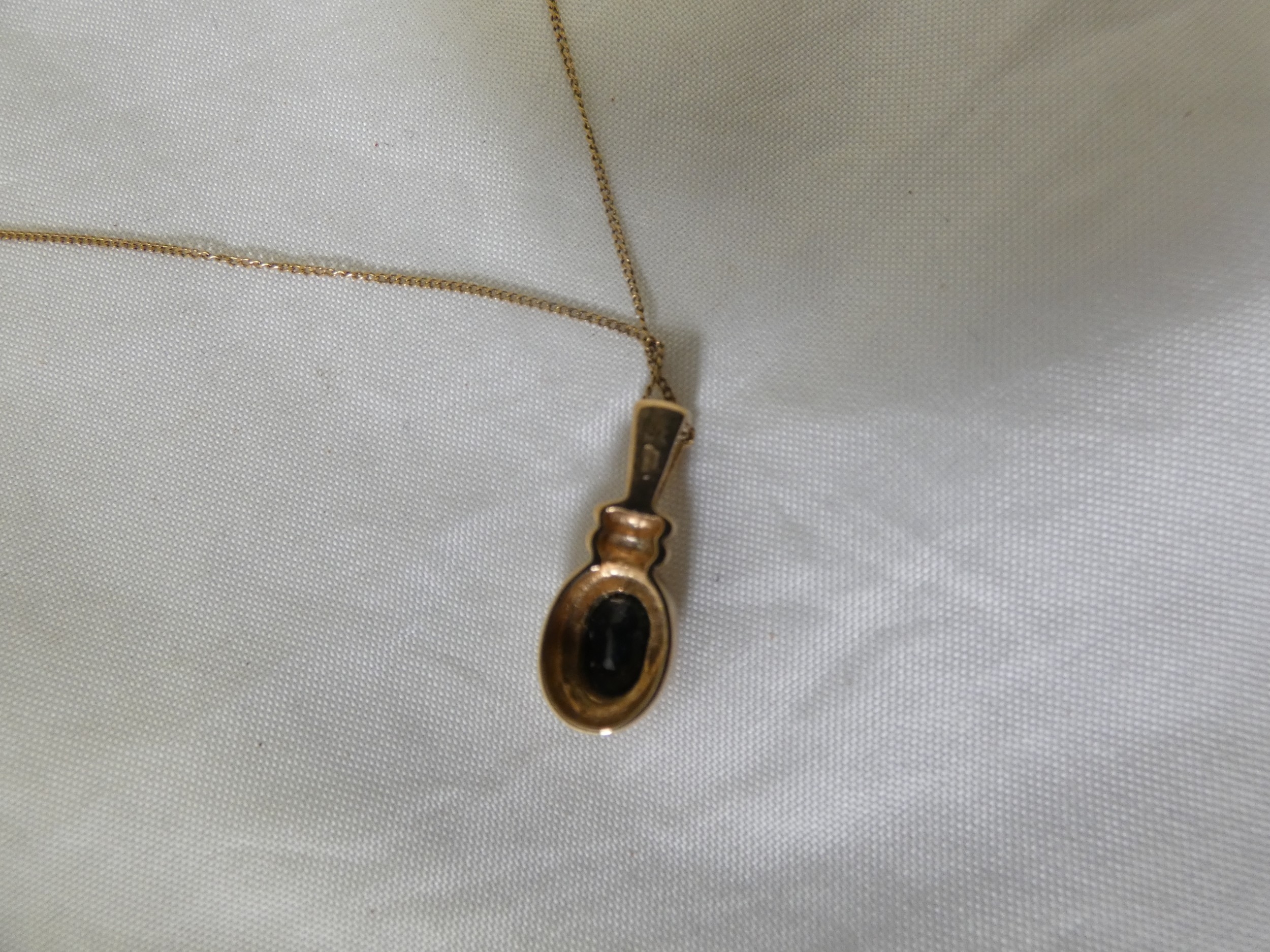9ct gold gem-set pendant on a 9ct gold chain, '375', 2.3g gross.