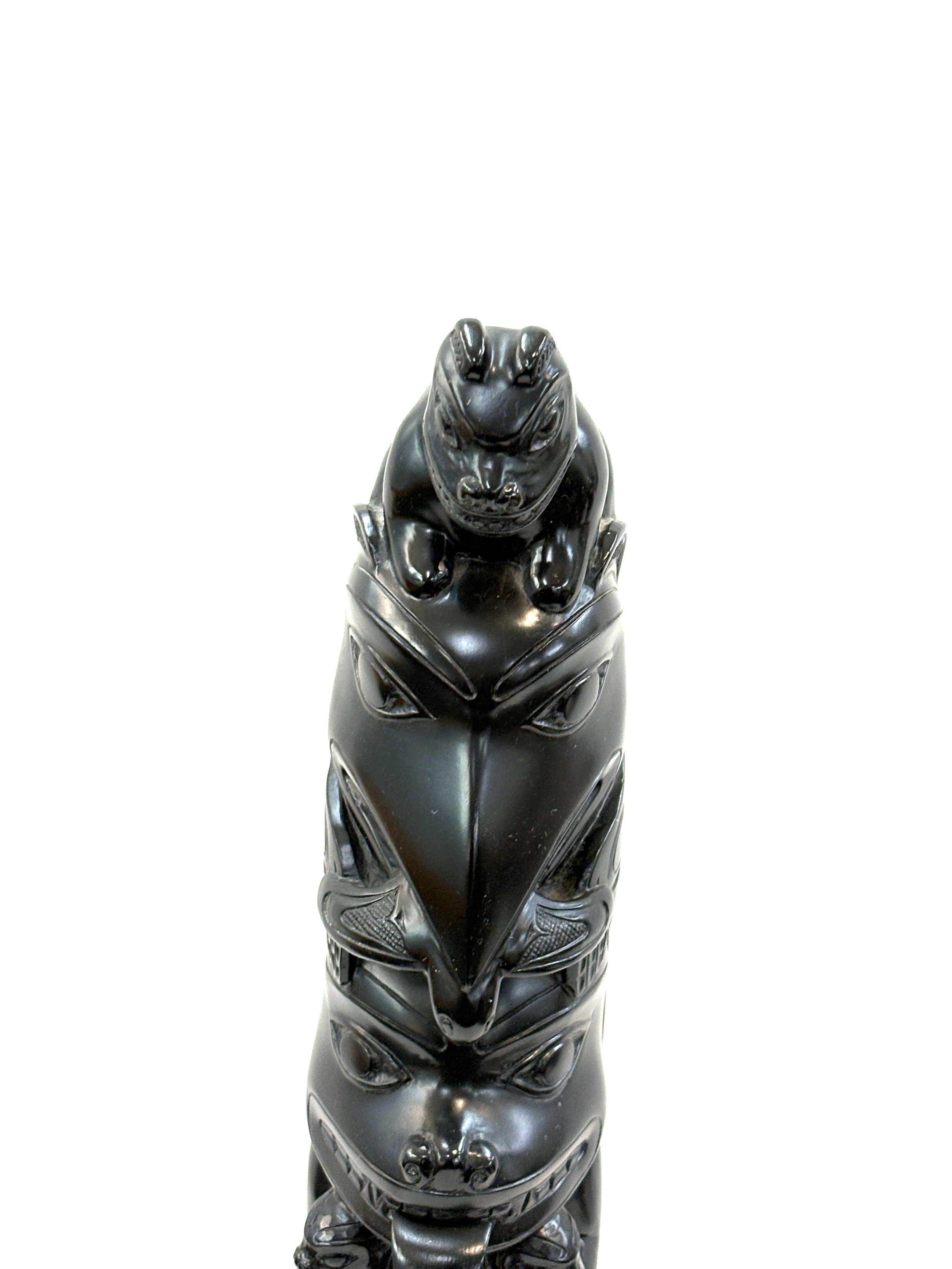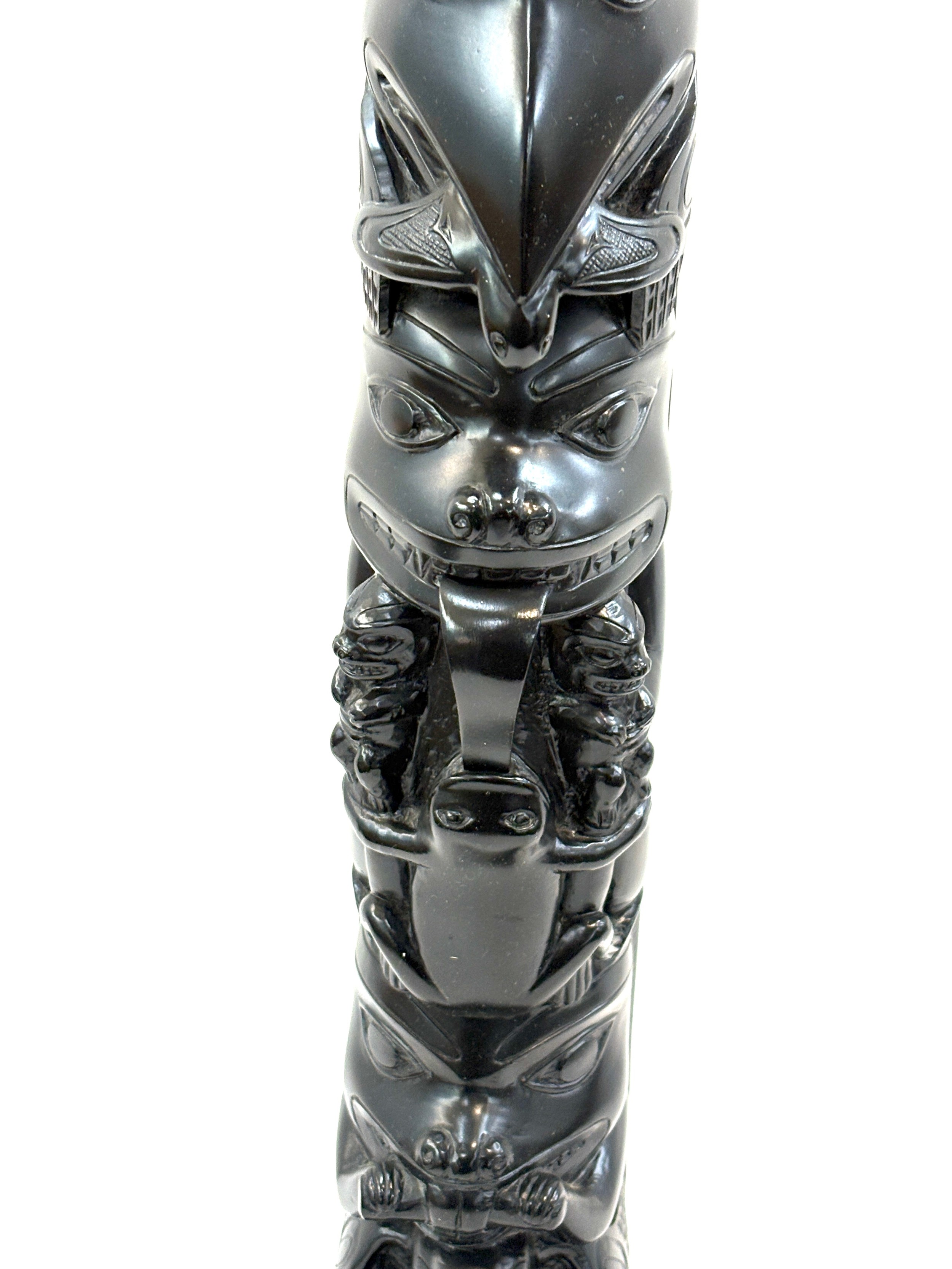 Resin totem pole ornament measures approximately 19 inches tall