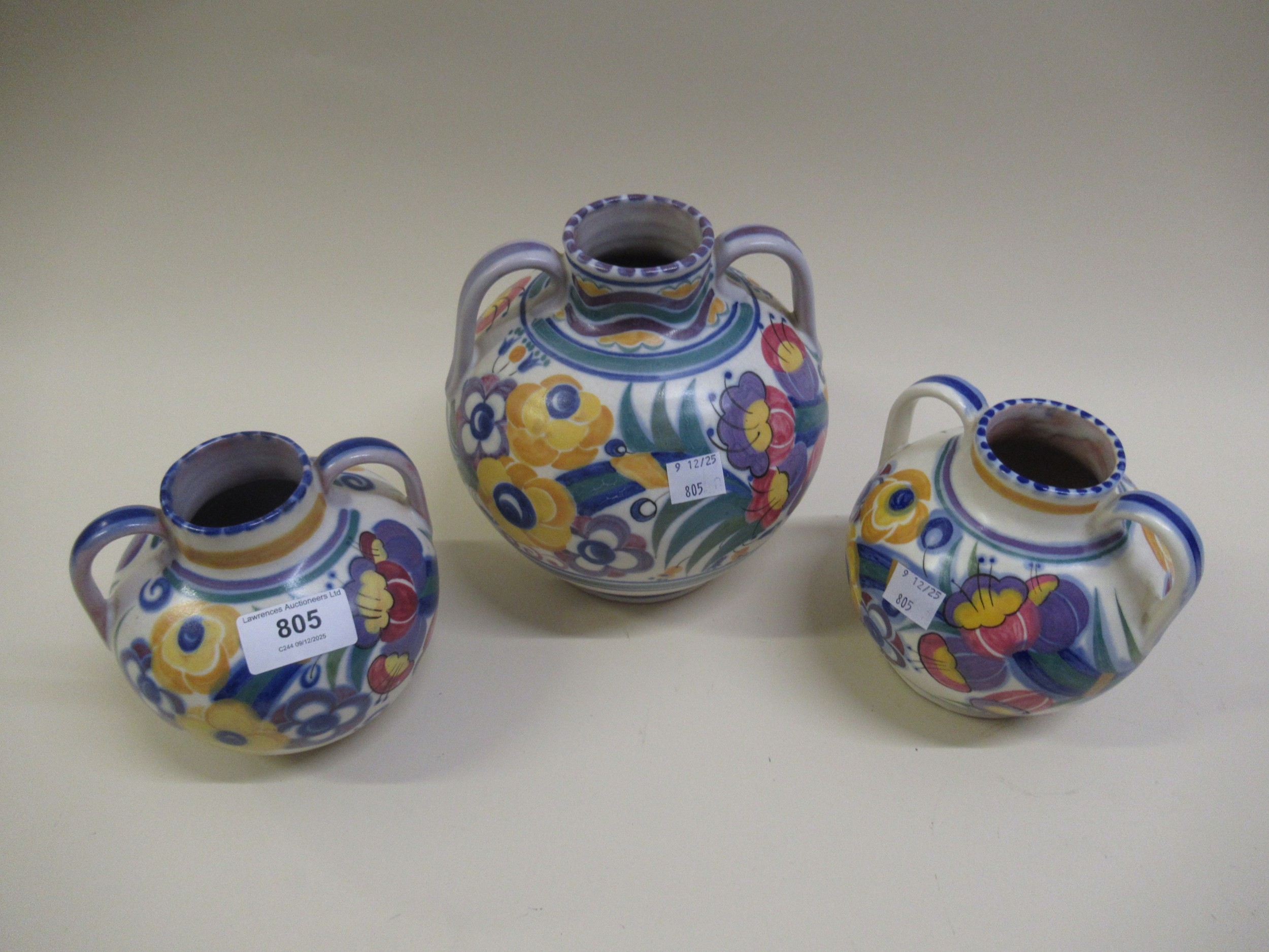 Three various early Poole pottery two handled vases