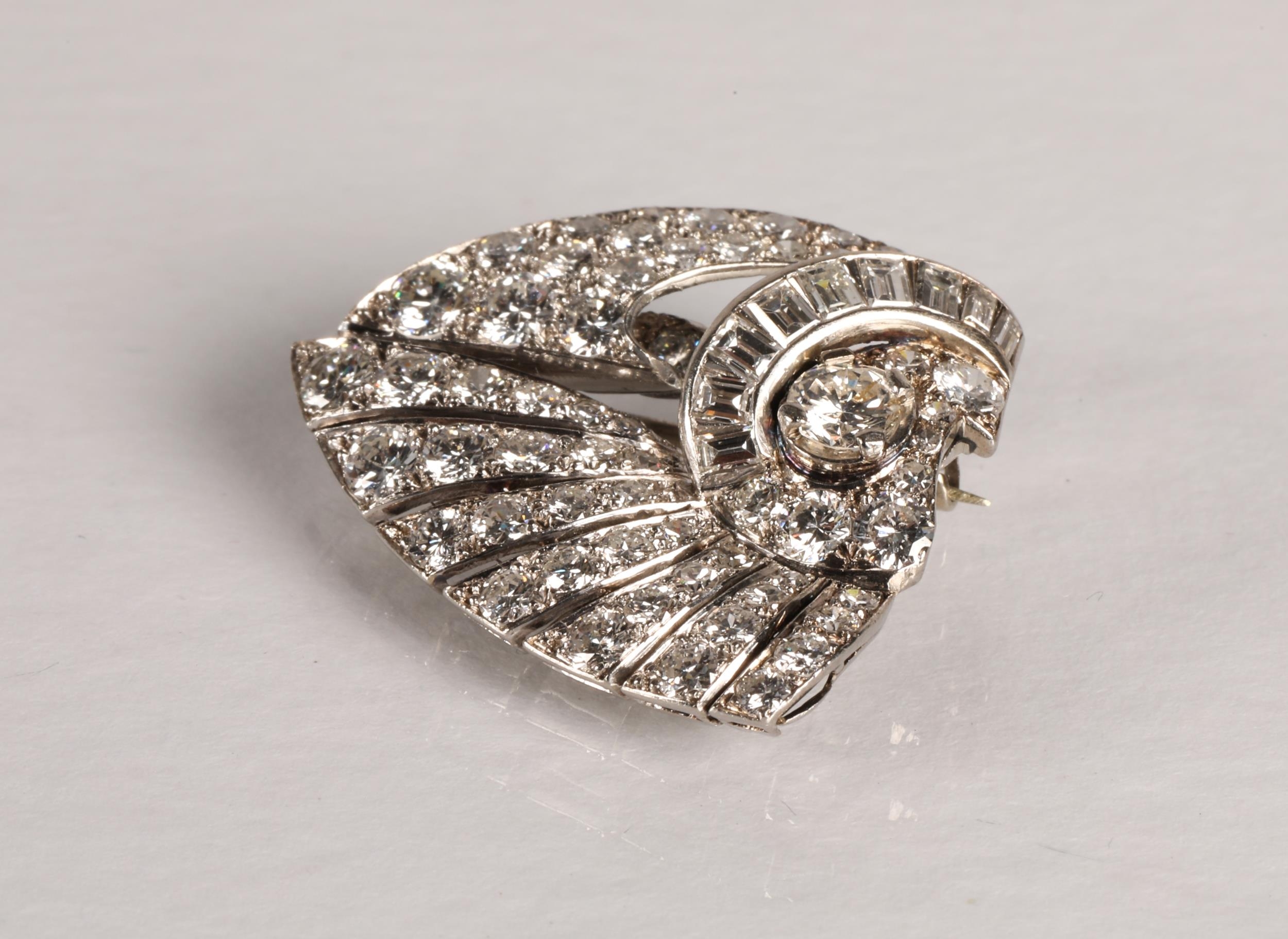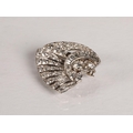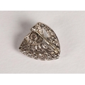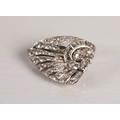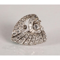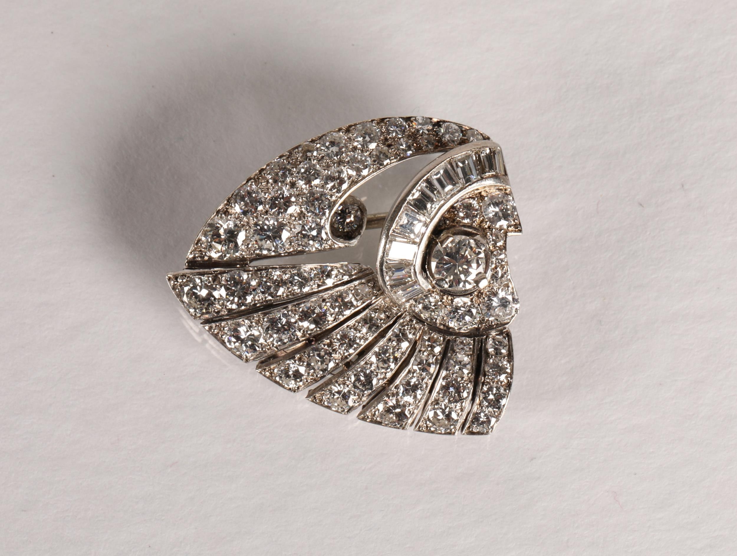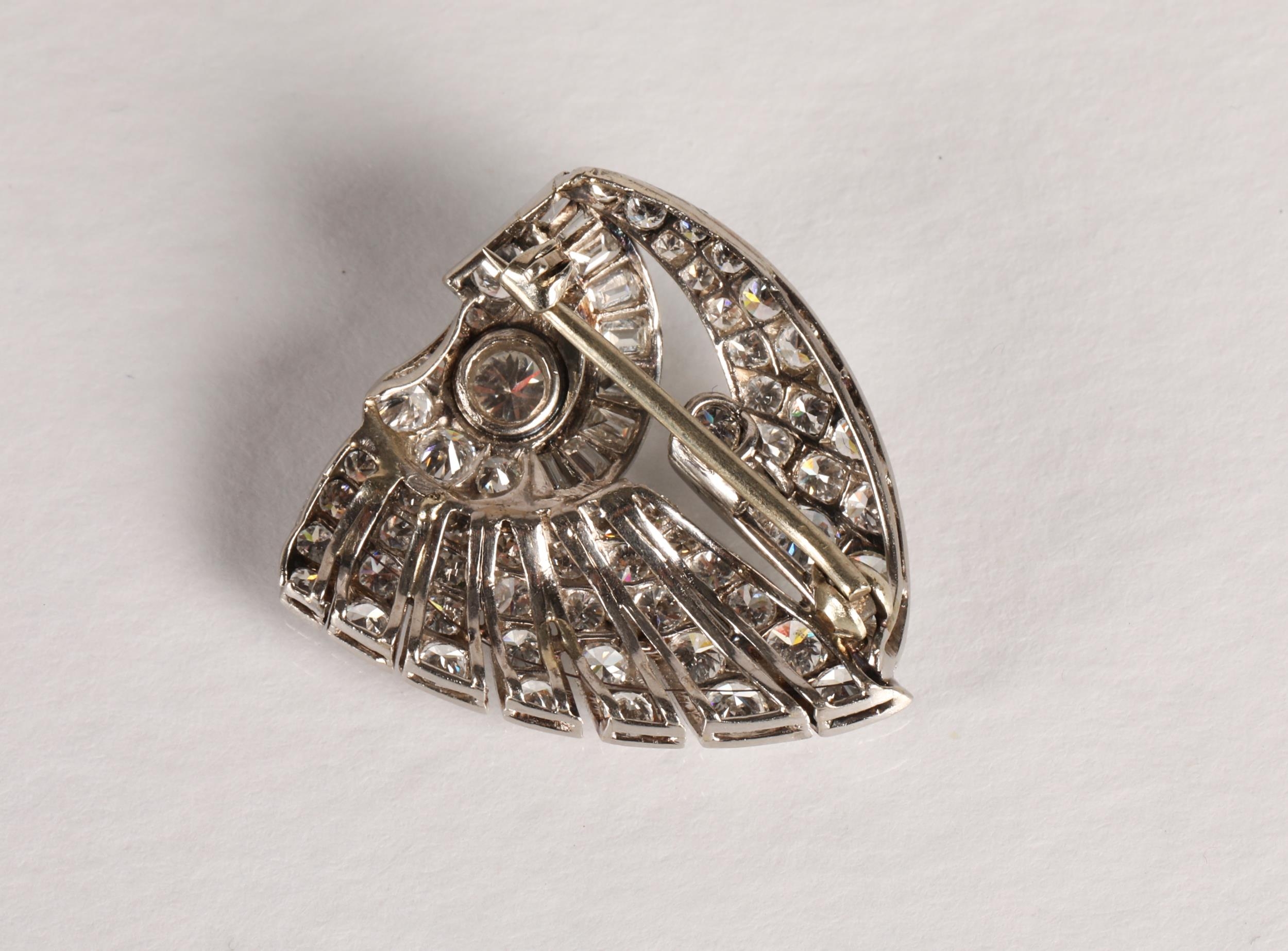 Art Deco style diamond encrusted brooch set on unmarked white metal, gross weight 7.4 grams