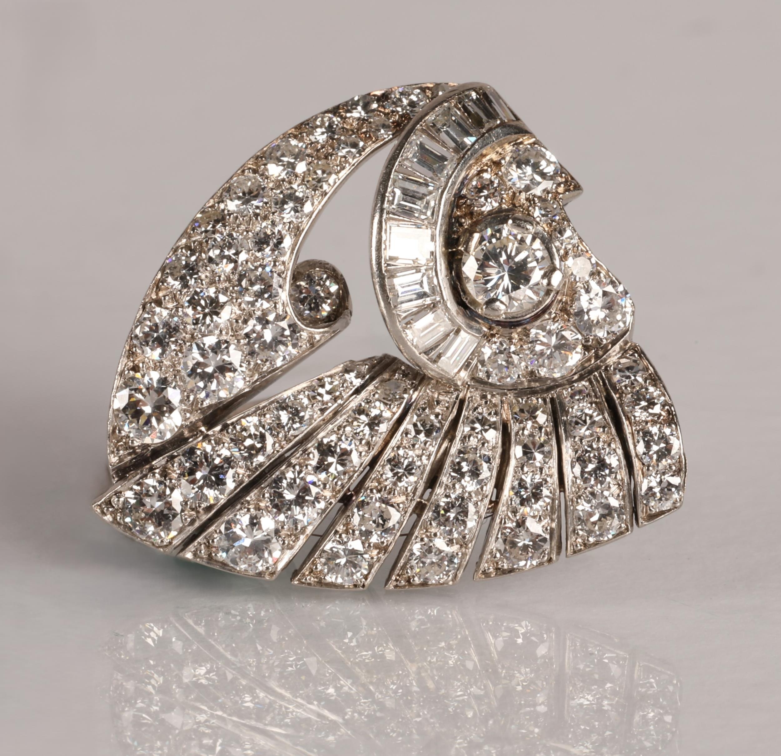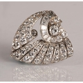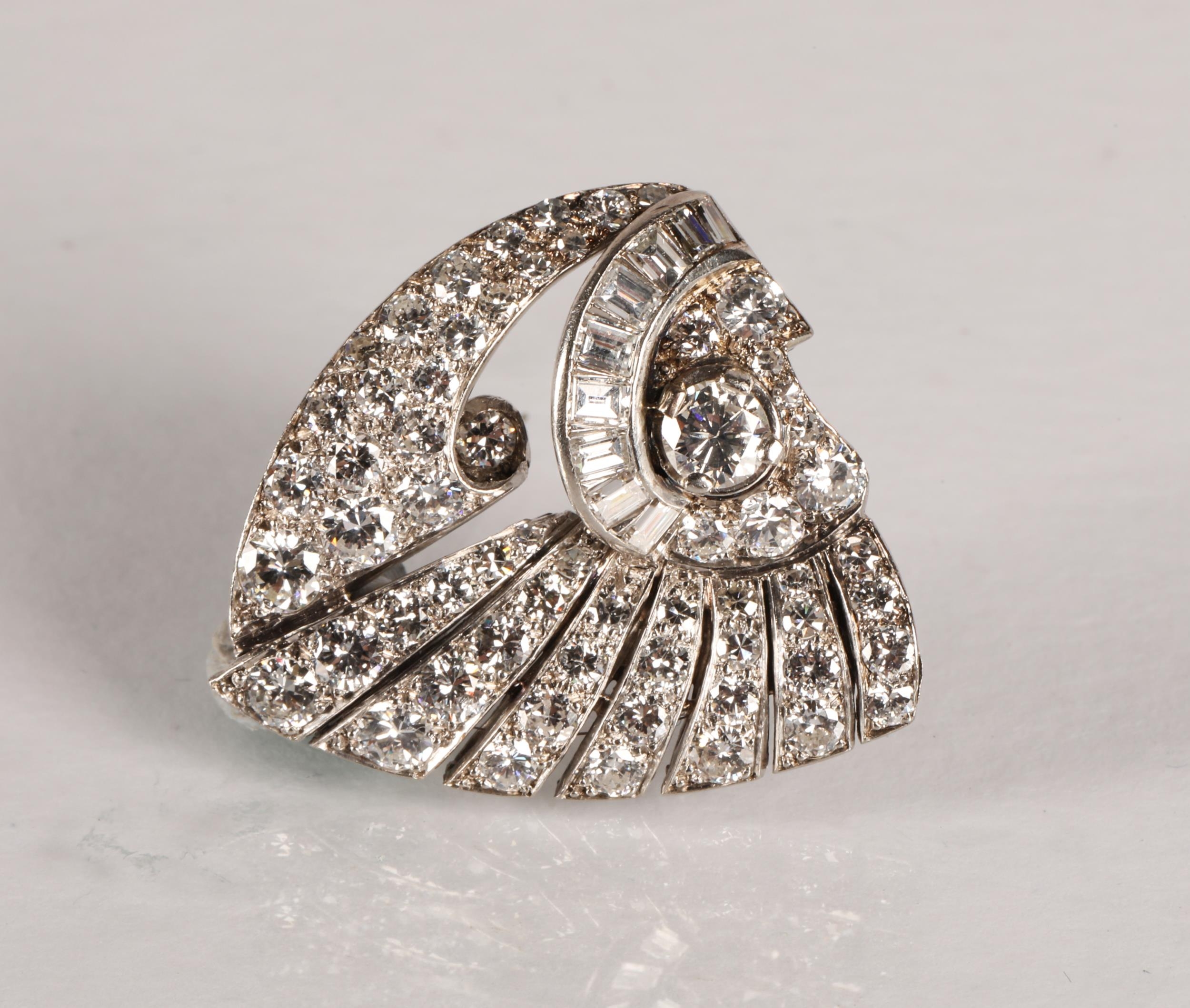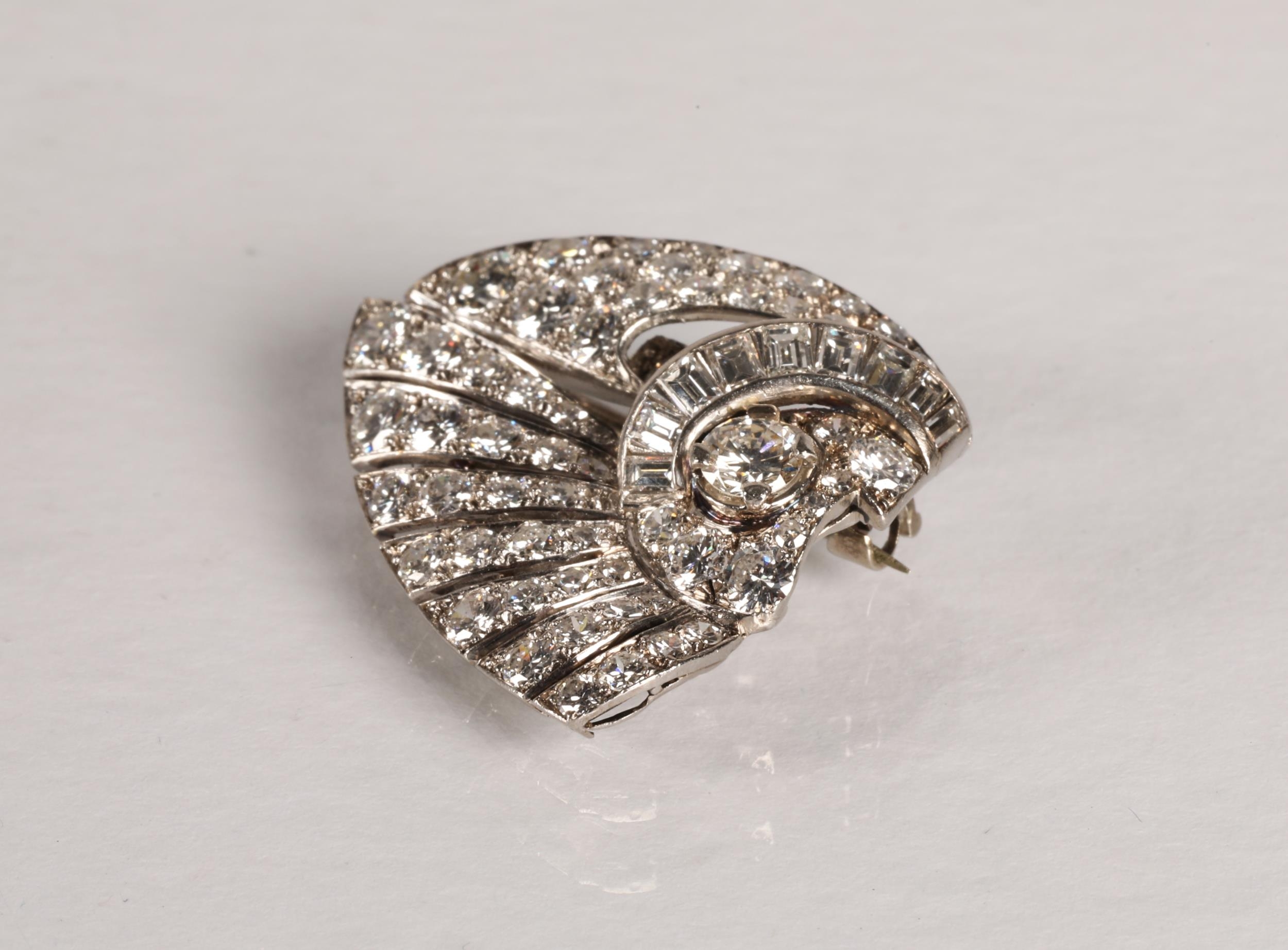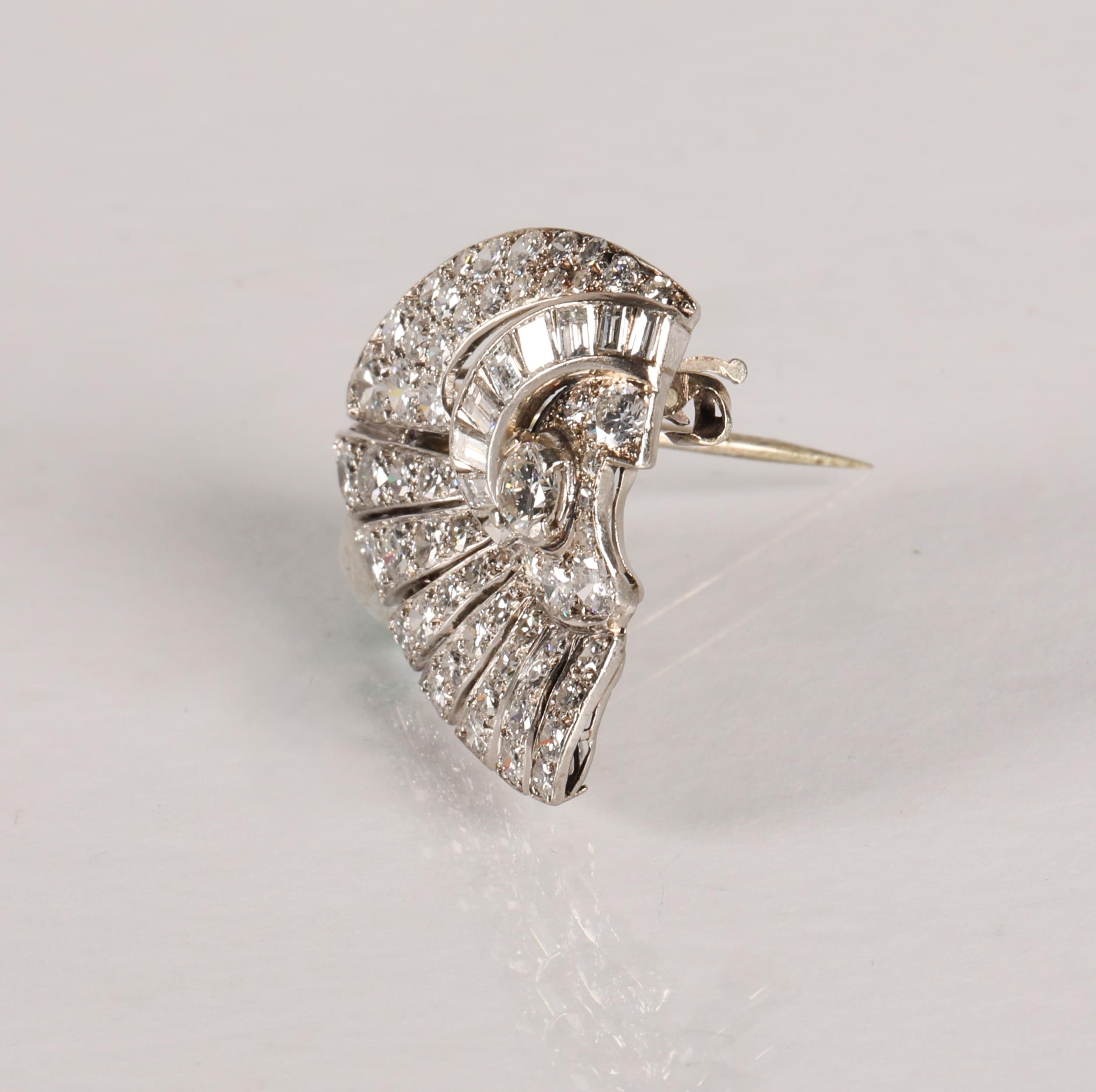 Art Deco style diamond encrusted brooch set on unmarked white metal, gross weight 7.4 grams