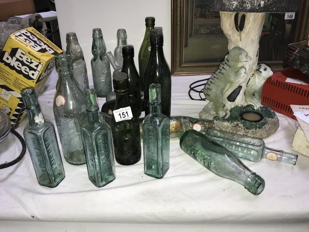 A mixed lot of old bottles.
