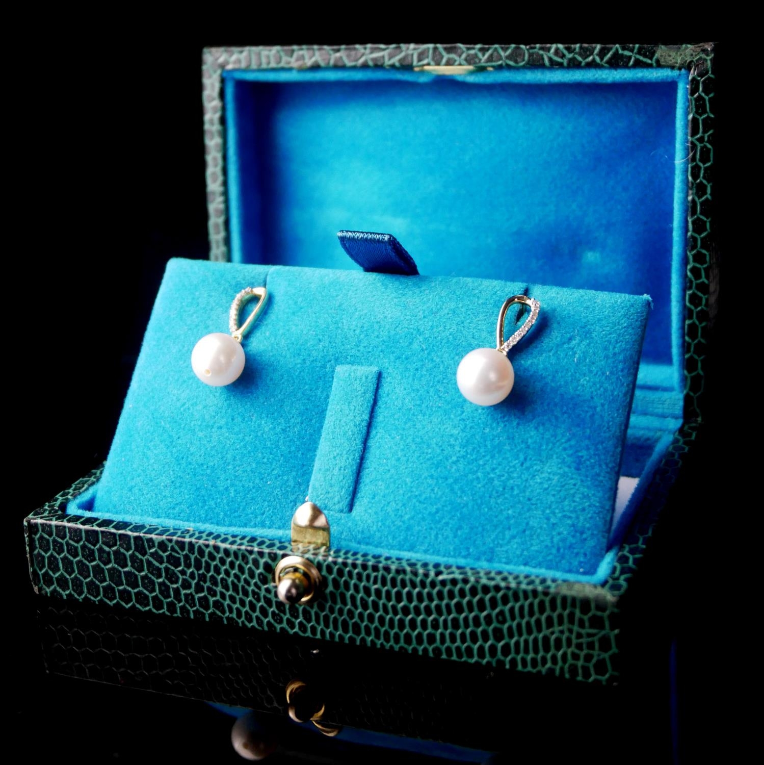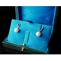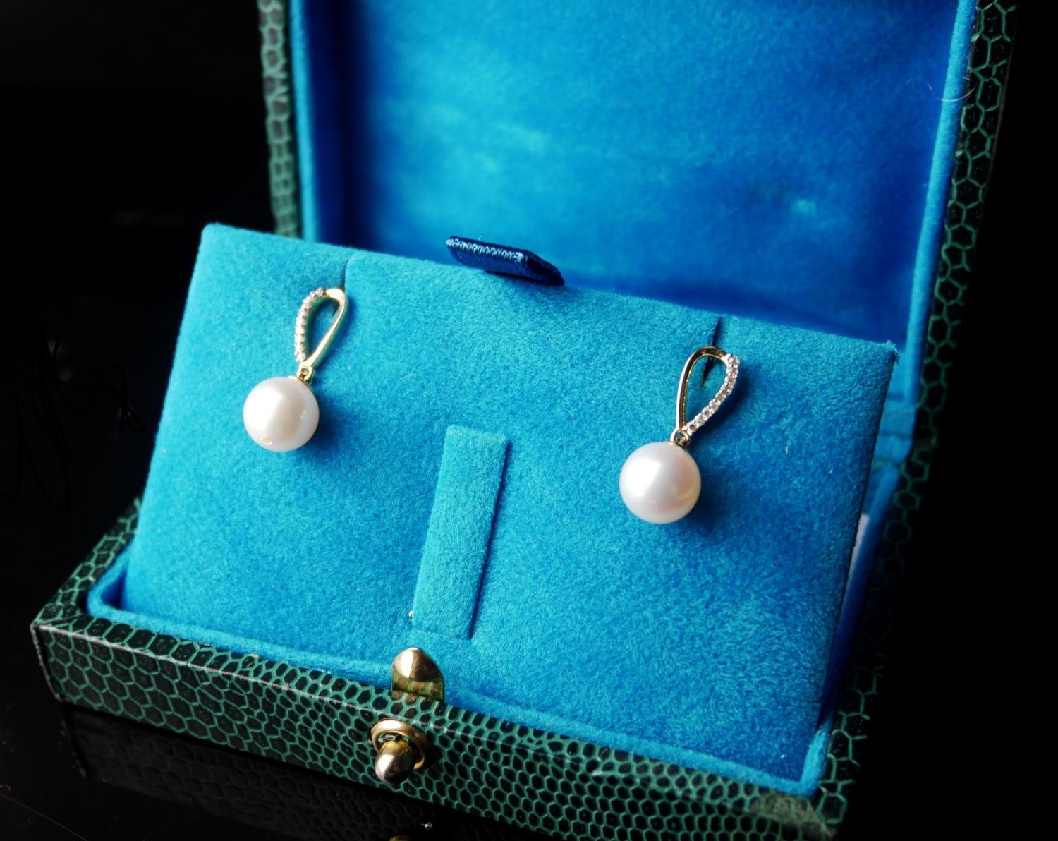 A PAIR OF 14CT GOLD, PEARL AND DIAMOND DROP EARRINGS