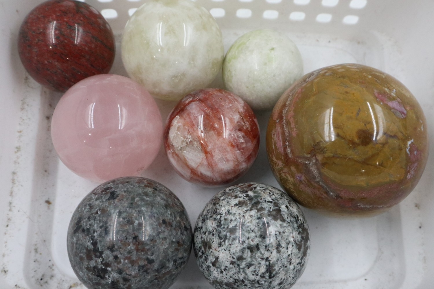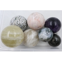 Eight crystal spheres including crystal, largest D: 90 mm. UK P&P Group 3 (£35+VAT for the first lot and £10+VAT for subsequent lots)
