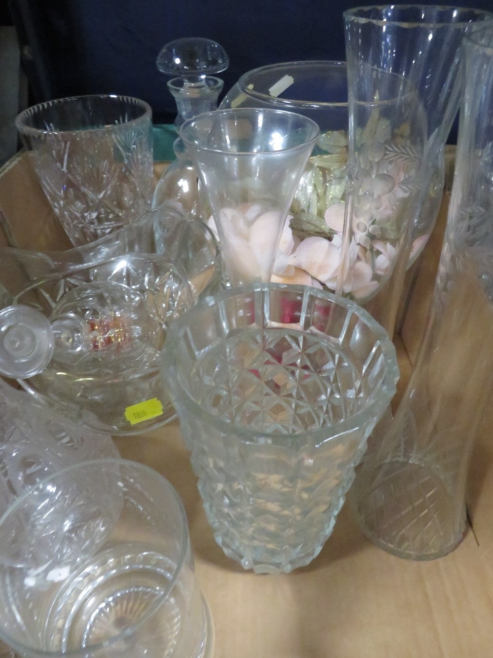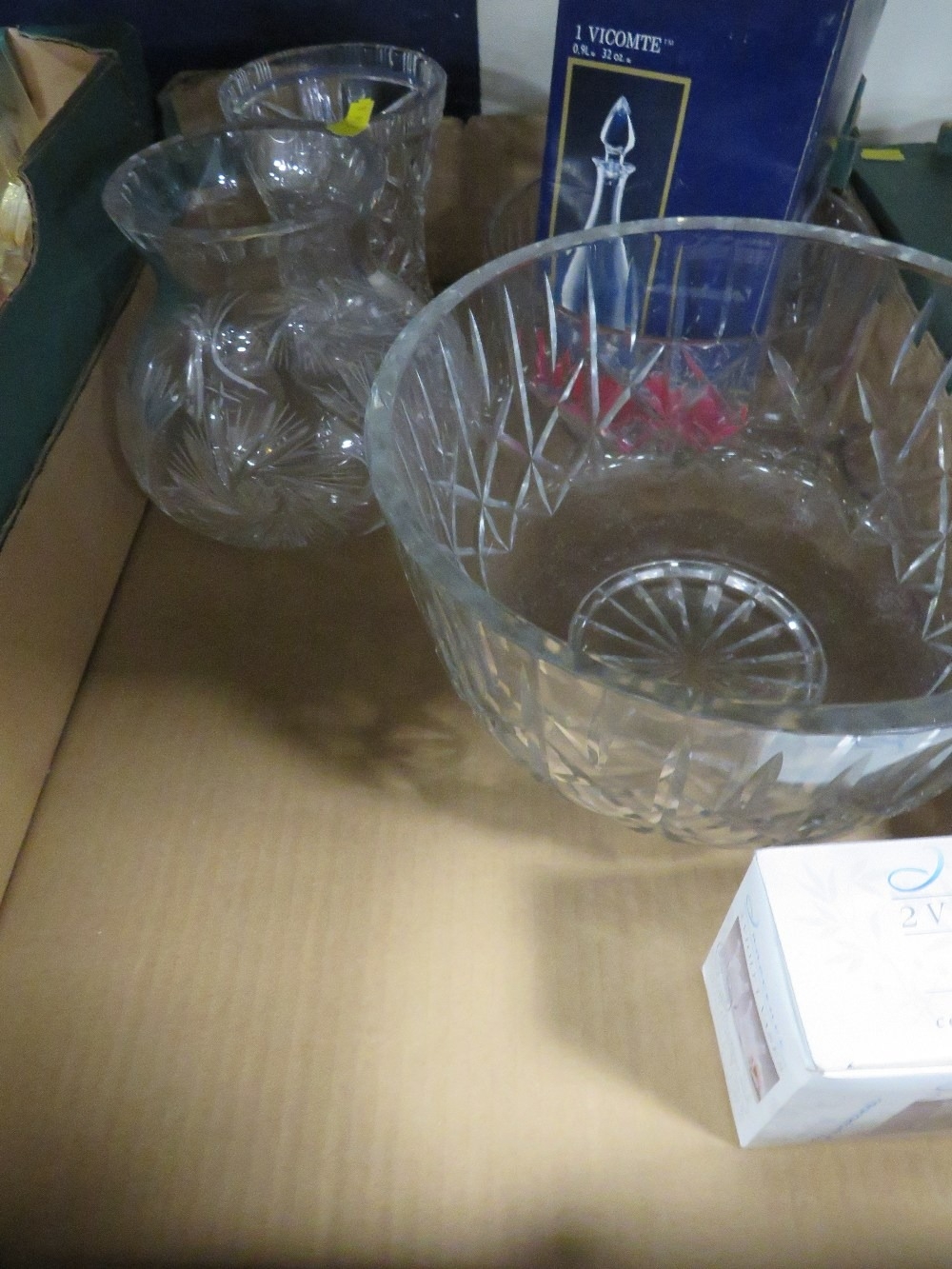 Four trays of assorted glassware to include bowls and vases ...