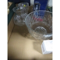 Four trays of assorted glassware to include bowls and vases etc