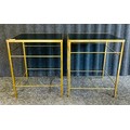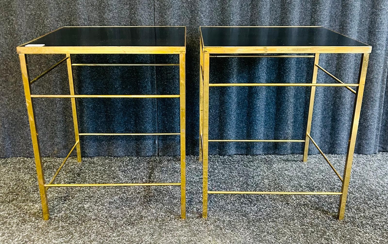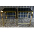 Two contemporary side tables with black surface within a brass frame [45.5 x 38 x 38cm]