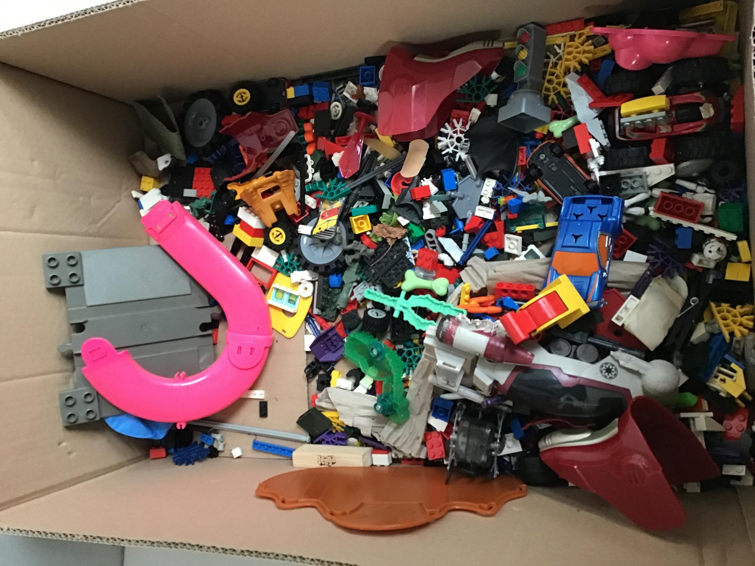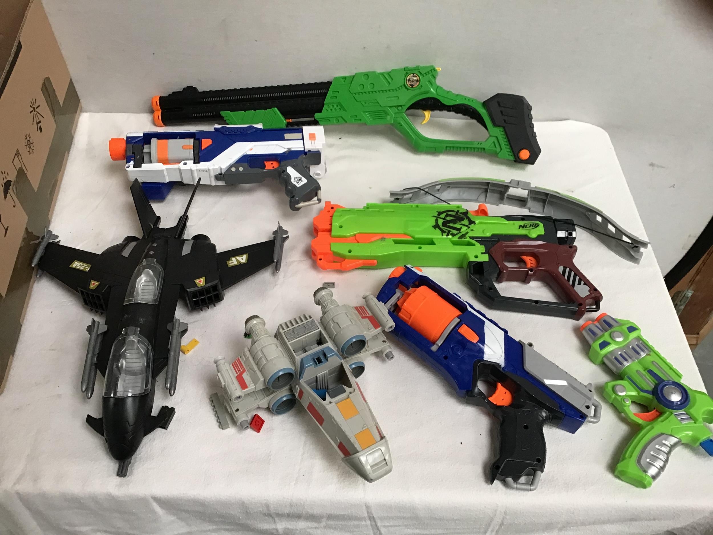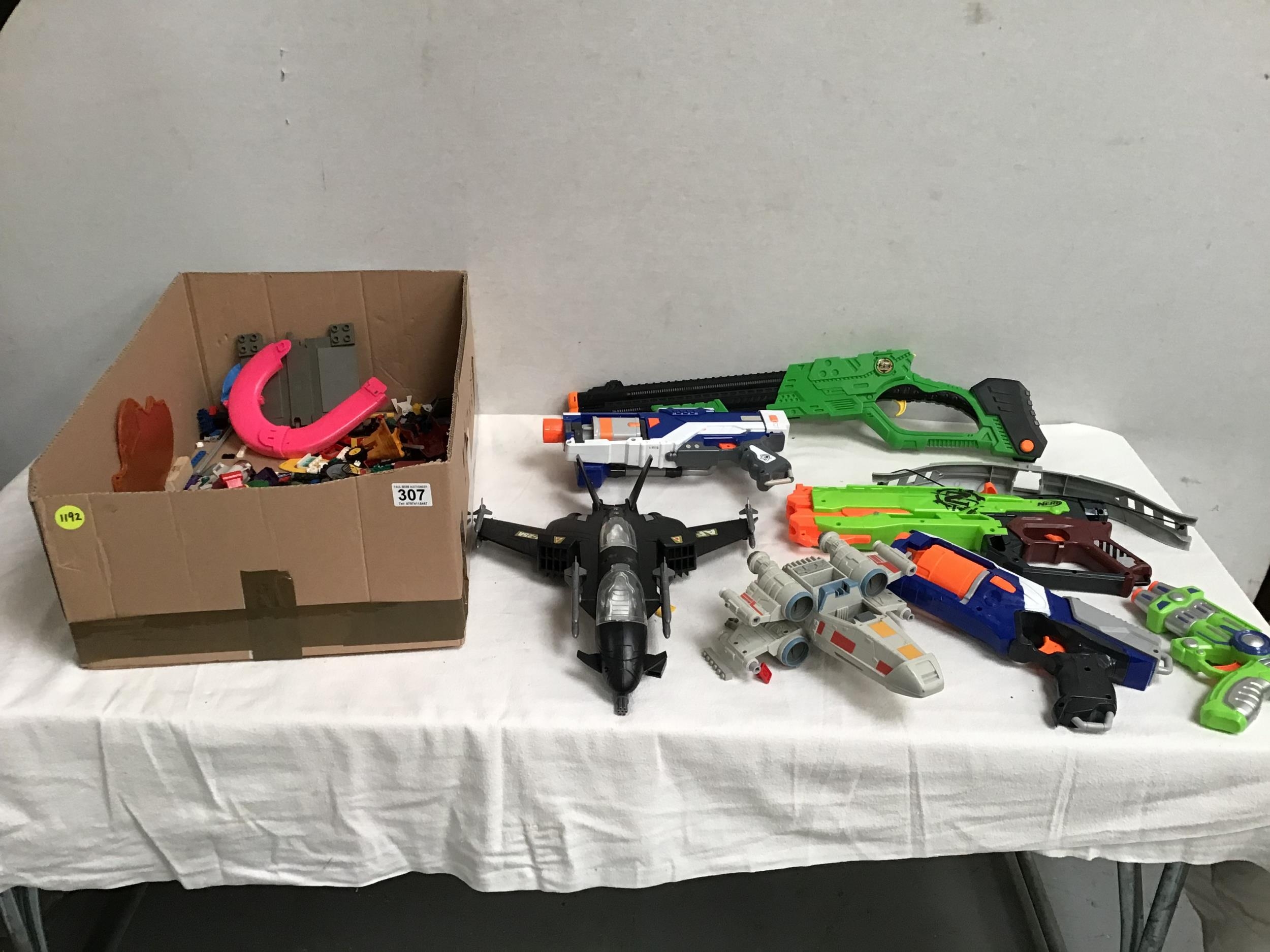 BOX OF TOYS TO INCLUDE NERF GUNS, LEGO ETC