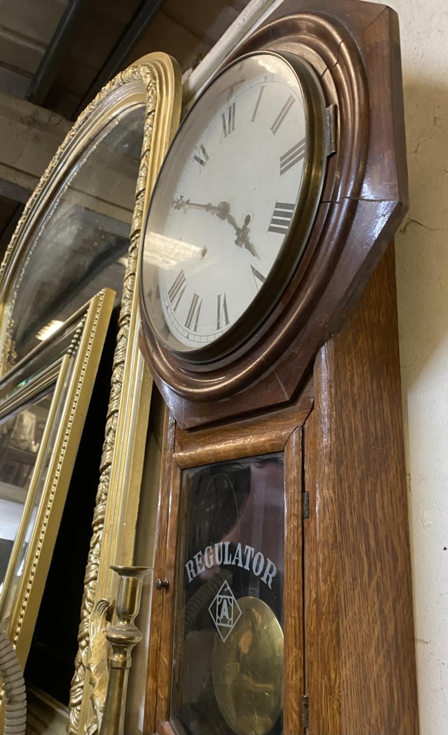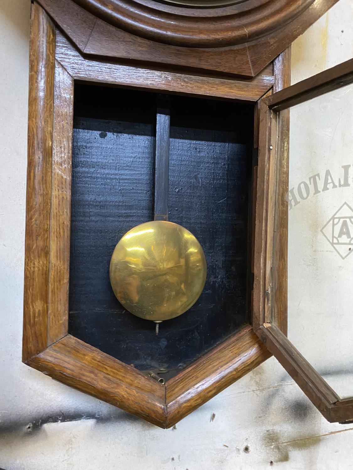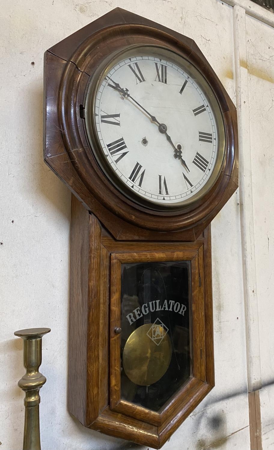 A FINE VICTORIAN ASTONIA REGULATOR WALL CLOCK, roman numerals to dial, within octagonal frame atop long drop base with glass door reading Regulator and Astonia mark, glass door revealing pendulum. Dimensions: 81cm long x 45cm wide approx.